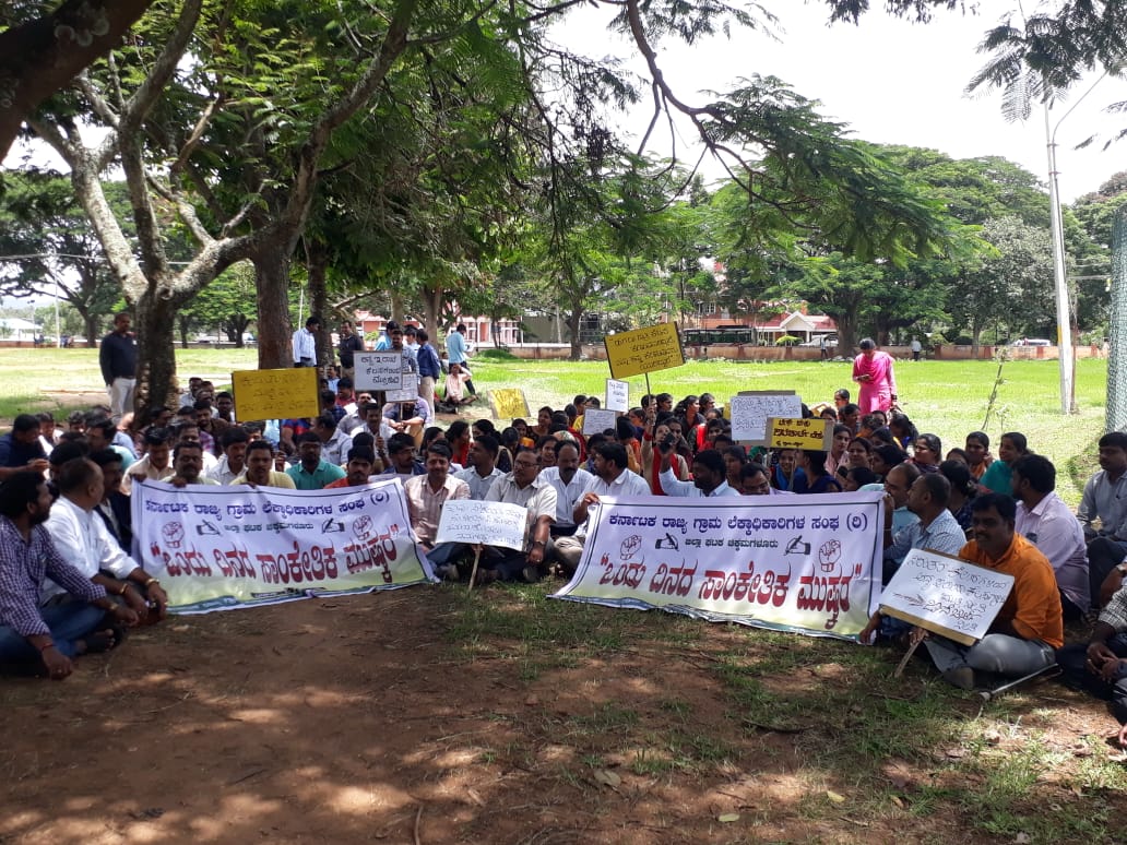 ಗ್ರಾಮಲೆಕ್ಕಾಧಿಕಾರಿಗಳ ಬೇಡಿಕೆಗಳ ಸಂಬಂಧ ಮಂಗಳವಾರ ಜಿಲ್ಲಾದ್ಯಂತ ಕೆಲಸ ಸ್ಥಗಿತಗೊಳಿಸಿ ಒಂದು ದಿನದ ಸಾಂಕೇತಿಕ ಧರಣಿ ನಡೆಸಲು ನಗರದ ಜಿಲ್ಲಾಧಿಕಾರಿ ಕಚೇರಿ ಆವರಣಕ್ಕೆ ಆಗಮಿಸಿದ್ದ ನೌಕರರಿಗೆ ಧರಣಿ ಹಮ್ಮಿಕೊಳ್ಳಲು ಜಿಲ್ಲಾಡಳಿನ ಕಾನೂನು ಸುವ್ಯವಸ್ಥೆಯ ನೆಪದಲ್ಲಿ ಅವಕಾಶ ನೀಡಲಿಲ್ಲ. ಇದರಿಂದಾಗಿ ವಿವಿಧ ತಾಲೂಕುಗಳಿಂದ ಧರಣಿ ಬೆಂಬಲಿಸಿ ಆಗಮಿಸಿದ್ದ ಗ್ರಾಮಲೆಕ್ಕಾಧಿಕಾರಿಗಳು ಜಿಲ್ಲಾ ಆಟದ ಮೈದಾನಕ್ಕೆ ತೆರಳಿ ಅಲ್ಲಿ ಸಾಂಕೇತಿಕ ಧರಣಿ ನಡೆಸಿದರು. ನಂತರ ಜಿಲ್ಲಾಧಿಕಾರಿ ಕಚೇರಿಗೆ ಆಗಮಿಸಿದ ನೌಕರರು, ಸಂಘದ ಮುಖಂಡರು ಮನವಿ ಪತ್ರ ಸಲ್ಲಿಸಿ ಹಿಂದಿರುಗಿದರು.