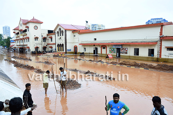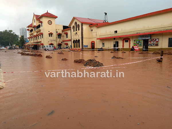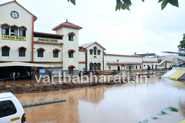 ಮಂಗಳೂರಿನಲ್ಲಿ ಕೃತಕ ನೆರೆ: ಕೇಂದ್ರ ರೈಲು ನಿಲ್ದಾಣಕ್ಕೂ ನುಗ್ಗಿದ ಮಳೆ ನೀರು