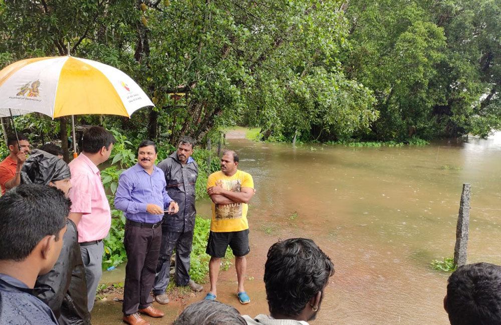 ಗುಂಡಿಬೈಲು, ಮೂಡನಿಡಂಬೂರು, ನಿಟ್ಟೂರು ಜಲಾವೃತ ಪ್ರದೇಶಗಳಿಗೆ ಇಂದು ಬೆಳಗ್ಗೆ ಸ್ಥಳಕ್ಕೆ ಉಡುಪಿ ತಹಶೀಲ್ದಾರ್ ಪ್ರದೀಪ್ ಕುರ್ಡೇಕರ್, ನಗರಸಭೆ ಪೌರಾಯುಕ್ತ ಆನಂದ ಕಲ್ಲೋಳಿಕರ್, ಸ್ಥಳೀಯ ನಗರಸಭೆ ಸದಸ್ಯರು ಹಾಗೂ ಇತರ ಅಧಿಕಾರಿಗಳು ಭೇಟಿ ನೀಡಿ ಪರಿಶೀಲನೆ ನಡೆಸಿದರು.
