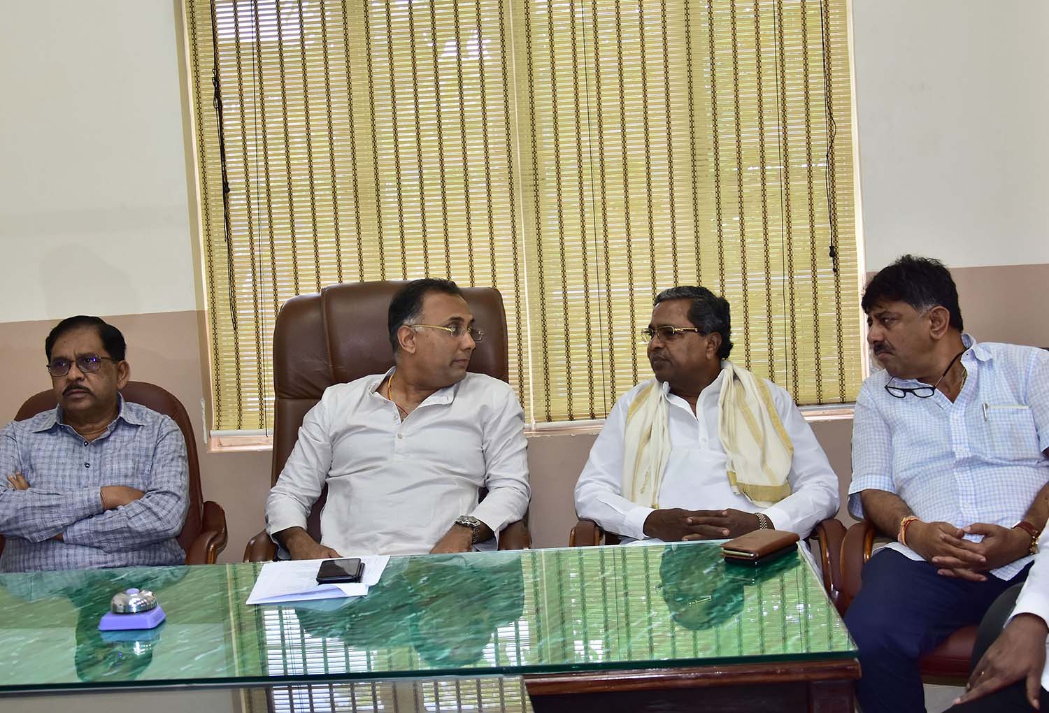 ಬೆಂಗಳೂರು, ಜು. 24: ಮೈತ್ರಿ ಮುಂದುವರಿಕೆ, ವಿಪಕ್ಷ ನಾಯಕನ ಆಯ್ಕೆ, ಅತೃಪ್ತ ಶಾಸಕರ ವಿರುದ್ಧ ಅನರ್ಹತೆ ಕ್ರಮಕ್ಕೆ ಒತ್ತಾಯ ಸೇರಿದಂತೆ ಪ್ರಸಕ್ತ ರಾಜಕೀಯ ವಿದ್ಯಮಾನಗಳ ಬಗ್ಗೆ ಕಾಂಗ್ರೆಸ್ ಶಾಸಕಾಂಗ ಪಕ್ಷದ ನಾಯಕ ಸಿದ್ದರಾಮಯ್ಯರ ಅಧ್ಯಕ್ಷತೆಯಲ್ಲಿ ಮುಖಂಡರು ಸಭೆ ನಡೆಸಿದರು.