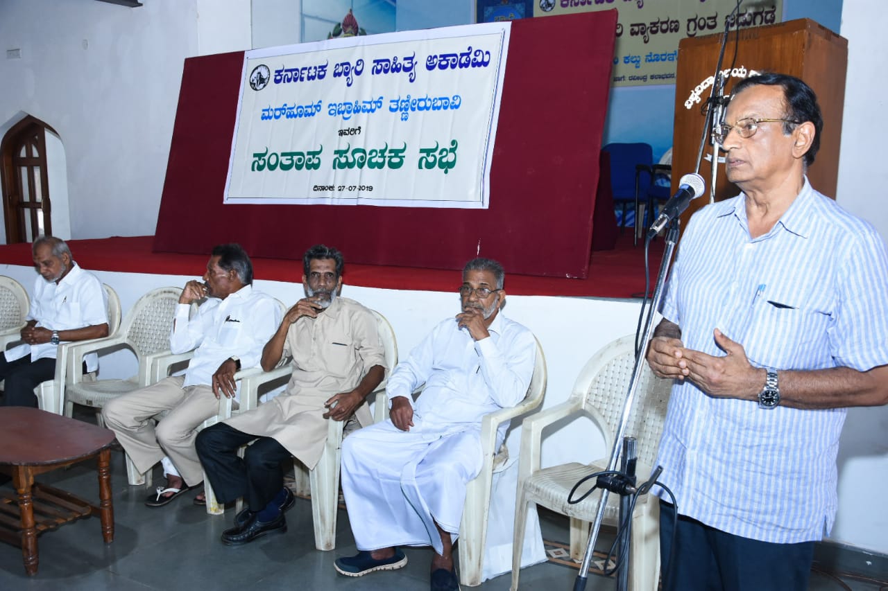 ಮಂಗಳೂರು: ಇತ್ತೀಚಿಗೆ ನಿಧನರಾದ ಹಿರಿಯ ಸಾಹಿತಿ, ಕಲಾವಿದ ಇಬ್ರಾಹಿಂ ತಣ್ಣೀರುಬಾವಿ ಅವರಿಗೆ ಸಂತಾಪ ಸೂಚಕ ಸಭೆಯು ಕರ್ನಾಟಕ ಬ್ಯಾರಿ ಸಾಹಿತ್ಯ ಅಕಾಡೆಮಿ ವತಿಯಿಂದ ನಗರದ ವಿಶ್ವವಿದ್ಯಾಲಯ ಕಾಲೇಜಿನ ರವೀಂದ್ರ ಕಲಾಭವನದಲ್ಲಿ ಶನಿವಾರ ನಡೆಯಿತು.