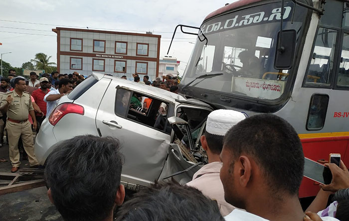 ಬೆಂಗಳೂರಿನಿಂದ ಕಾರಿನಲ್ಲಿ ಕುಟುಂಬದ ಸಮೇತ ಗ್ರಾಮಕ್ಕೆ ಆಗಮಿಸುತ್ತಿದ್ದ ರವಿ ಅವರ ಮಾರುತಿ ರಿಟ್ಝ್ ಕಾರು ನಿಯಂತ್ರಣ ತಪ್ಪಿ ಡಿವೈಡರ್ ಜಿಗಿದು ಮೈಸೂರು ಕಡೆಯಿಂದ ಬರುತ್ತಿದ್ದ ಸಾರಿಗೆ ಬಸ್ ಗೆ ಢಿಕ್ಕಿಯಾಗಿದೆ. ಅಪಘಾತದ ರಭಸಕ್ಕೆ ಕಾರು ನಜ್ಜುಗುಜ್ಜಾಗಿದ್ದು, ಸ್ಥಳದಲ್ಲೇ ಮೂವರು ಸಾವನ್ನಪ್ಪಿದ್ದಾರೆ. ತೀವ್ರ ಗಾಯಗೊಂಡಿದ್ದ ಮಂಜುಳಾ ಅವರನ್ನು ಜಿಲ್ಲಾಸ್ಪತ್ರೆಗೆ (ಮಿಮ್ಸ್) ಸಾಗಿಸಲಾಯಿತಾದರೂ ಚಿಕಿತ್ಸೆ ಫಲಕಾರಿಯಾಗದೆ ಮೃತಪಟ್ಟಿದ್ದಾರೆ.
