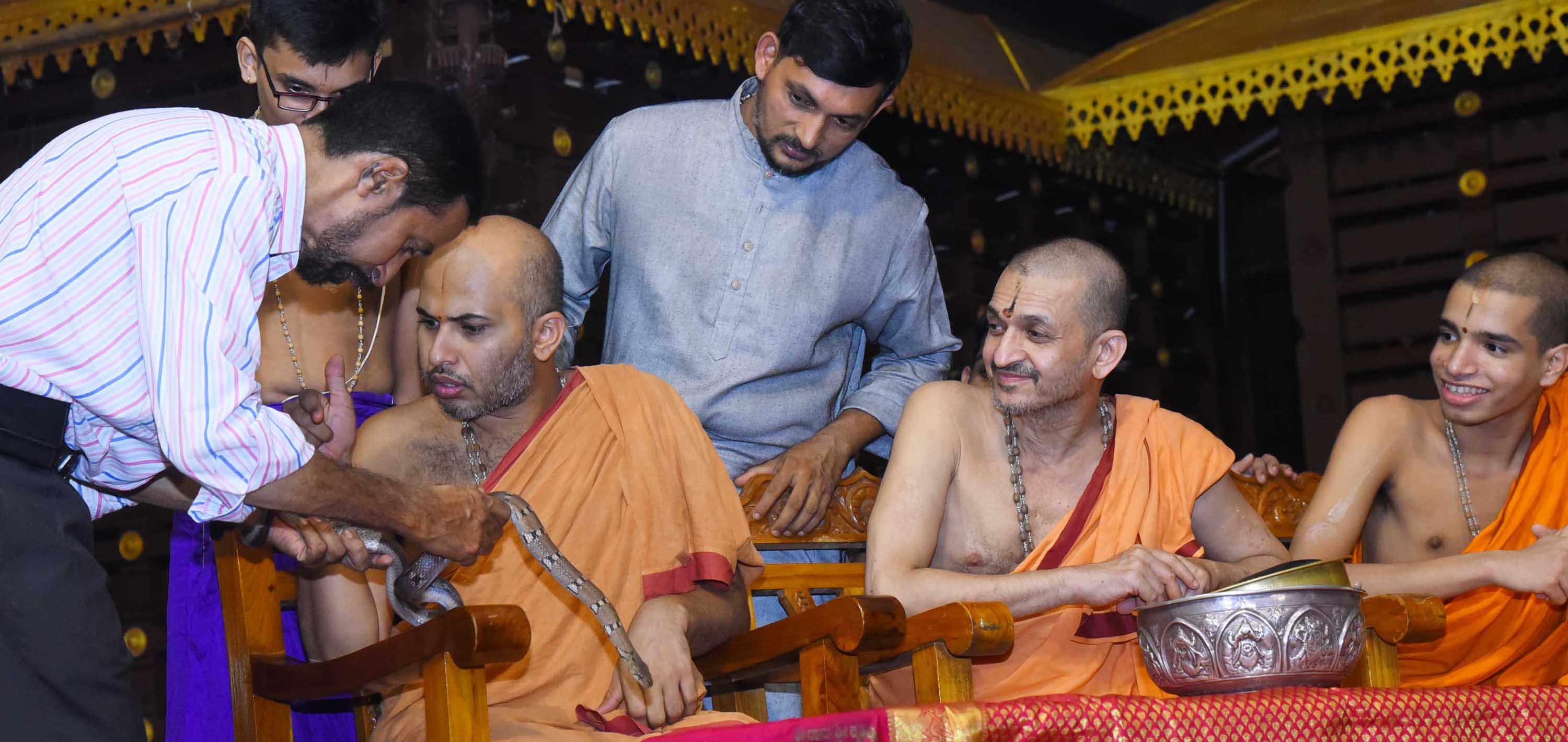 ಪರ್ಯಾಯಪಲಿಮಾರು ಮಠದ ಆಶ್ರಯದಲ್ಲಿ ರಾಜಾಂಗಣದಲ್ಲಿ ಉಡುಪಿ ಜಿಲ್ಲಾ ಯುವ ಬ್ರಾಹ್ಮಣ ಪರಿಷತ್ ವತಿಯಿಂದ ನಡೆದ ‘ಹಾವು-ನಾವು’ ತುಳು ನಾಡಿನಲ್ಲಿ ನಾಗಾರಾಧನೆಯ ಹಿಂದಿರುವ ಸತ್ಯಾಂಶಗಳು, ಈ ಹಿನ್ನೆಲೆಯಲ್ಲಿ ಧಾರ್ಮಿಕ ಹಾಗೂ ವೈಜ್ಞಾನಿಕ ಚಿಂತನೆಯ ಉಪಯುಕ್ತ ಮಾಹಿತಿ ಕಾರ್ಯಕ್ರಮದ ಅಧ್ಯಕ್ಷತೆ ವಹಿಸಿ ಅವರು ಮಾತನಾಡುತಿದ್ದರು.