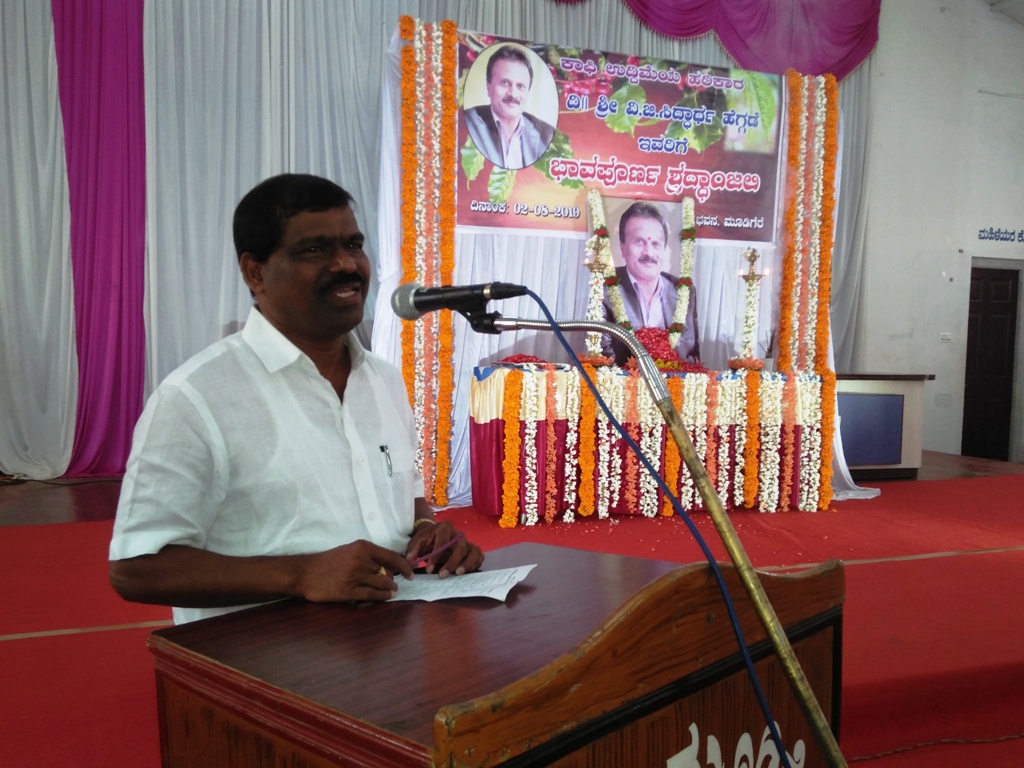 ಶುಕ್ರವಾರ ಪಟ್ಟಣದ ಜೇಸಿ ಭವನದಲ್ಲಿ ಕಾಫಿ ಬೆಳೆಗಾರರ ಸಂಘ ಹಾಗೂ ವಿವಿಧ ರಾಜಕೀಯ ಪಕ್ಷಗಳು, ವಿವಿಧ ಸಂಘ ಸಂಸ್ಥೆಗಳ ವತಿಯಿಂದ ಆಯೋಜಿಸಿದ್ದ ಸಿದ್ದಾರ್ಥ ಅವರ ಶ್ರದ್ಧಾಂಜಲಿ ಕಾರ್ಯಕ್ರಮದಲ್ಲಿ ಮಾತನಾಡಿದ ಅವರು, ಸಿದ್ದಾರ್ಥ ಅವರ ಅಕಾಲಿಕ ಸಾವು ಜಿಲ್ಲೆಯ ಜನತೆಗೆ ಬಹುದೊಡ್ಡ ನಷ್ಟವಾಗಿದೆ. ಪ್ರತಿಕ್ಷಣವೂ ಕಾಫಿ ನಾಡಿಗೆ ಮೋಡ ಕವಿದ ವಾತಾವರಣ ಉಂಟಾಗುತ್ತಿದೆ. ಅವರ ಅಗಲಿಕೆಯಿಂದ ಕಾಫಿ ಉದ್ಯಮ ಬಡವಾಗಿದೆ. ಸಿದ್ದಾರ್ಥ ಅವರ ನೆನಪಿಗಾಗಿ ಪಟ್ಟಣದಲ್ಲಿ ಪ್ರತಿಮೆಯನ್ನು ಸ್ಥಾಪಿಸಲಾಗುವುದು. ಅವರ ಅಸಹಜ ಸಾವಿನ ಪ್ರಕರಣದ ಬಗ್ಗೆ ಉನ್ನತ ಮಟ್ಟದ ತನಿಖೆ ನಡೆಸಲು ನ್ಯಾಯಾಲಯದ ಮೊರೆ ಹೋಗಲು ಬೆಳೆಗಾರರ ಸಂಘ ನಿರ್ಧರಿಸಿದೆ ಎಂದು ತಿಳಿಸಿದರು.