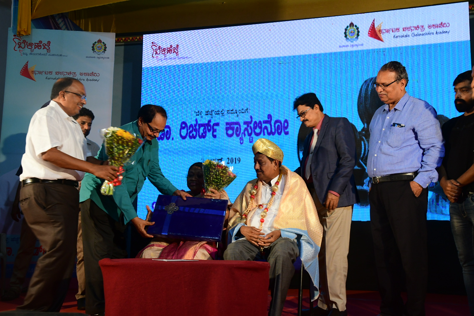 ಕರ್ನಾಟಕ ಚಲನಚಿತ್ರ ಅಕಾಡೆಮಿಯ ವತಿಯಿಂದ ವಿಶ್ವ ವಿದ್ಯಾನಿಲ ಯ ಕಾಲೇಜಿನ ರವೀಂದ್ರ ಕಲಾಭವನದಲ್ಲಿ ಹಮ್ಮಿಕೊಂಡ ಬೆಳ್ಳಿ ಹೆಜ್ಜೆ ಕಾರ್ಯಕ್ರಮ ನಮ್ಮೊಂದಿಗೆ ಡಾ.ರಿಚರ್ಡ್ ಕ್ಯಾಸ್ಟಲಿನೋ ಗೌರವಾರ್ಪಣೆ ಕಾರ್ಯಕ್ರಮ ವನ್ನುದ್ದೇಶಿಸಿ ಮಾತನಾಡುತ್ತಿದ್ದರು.