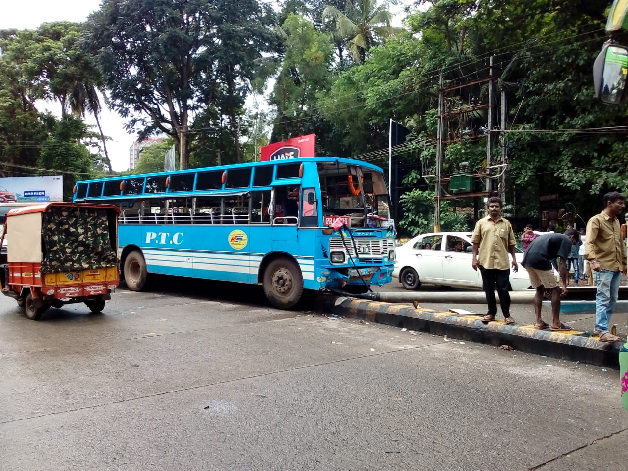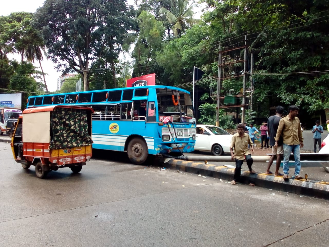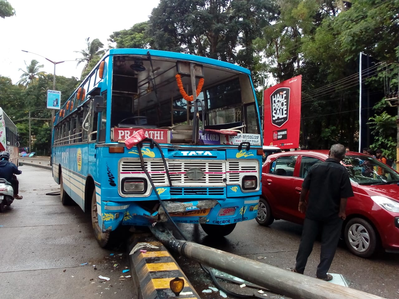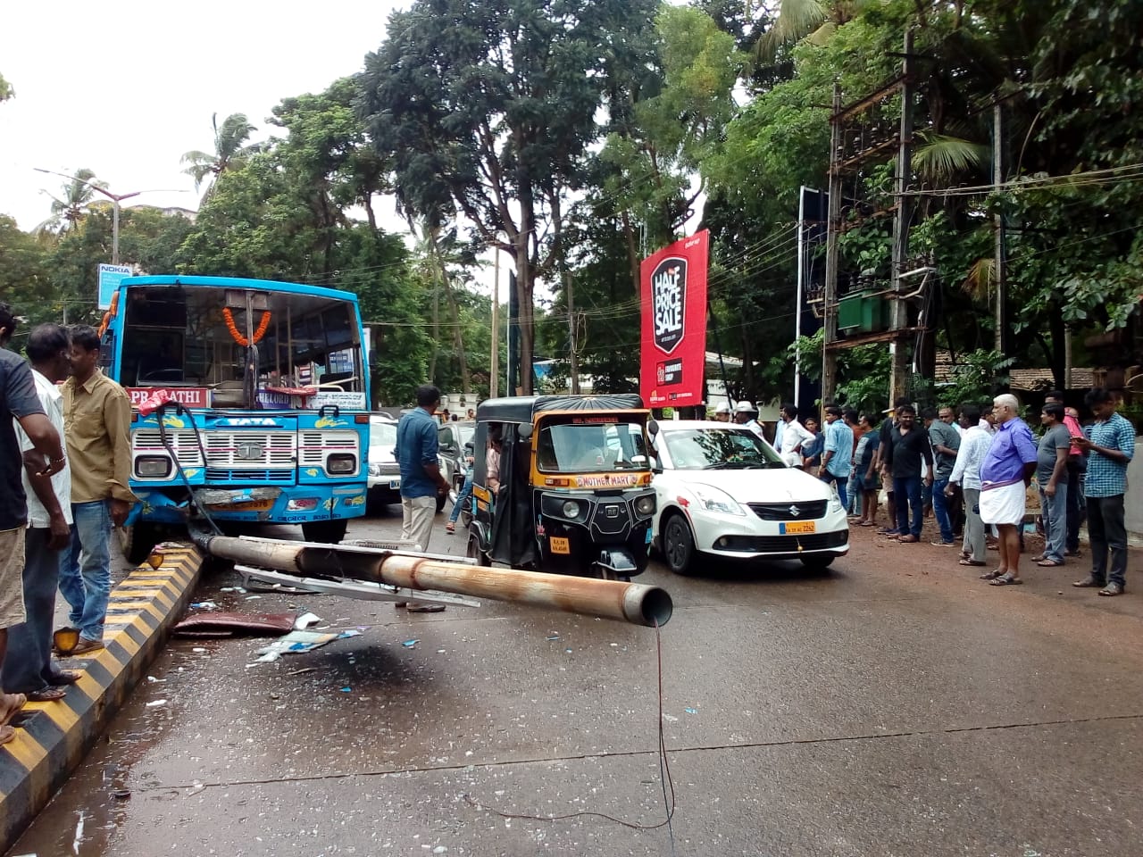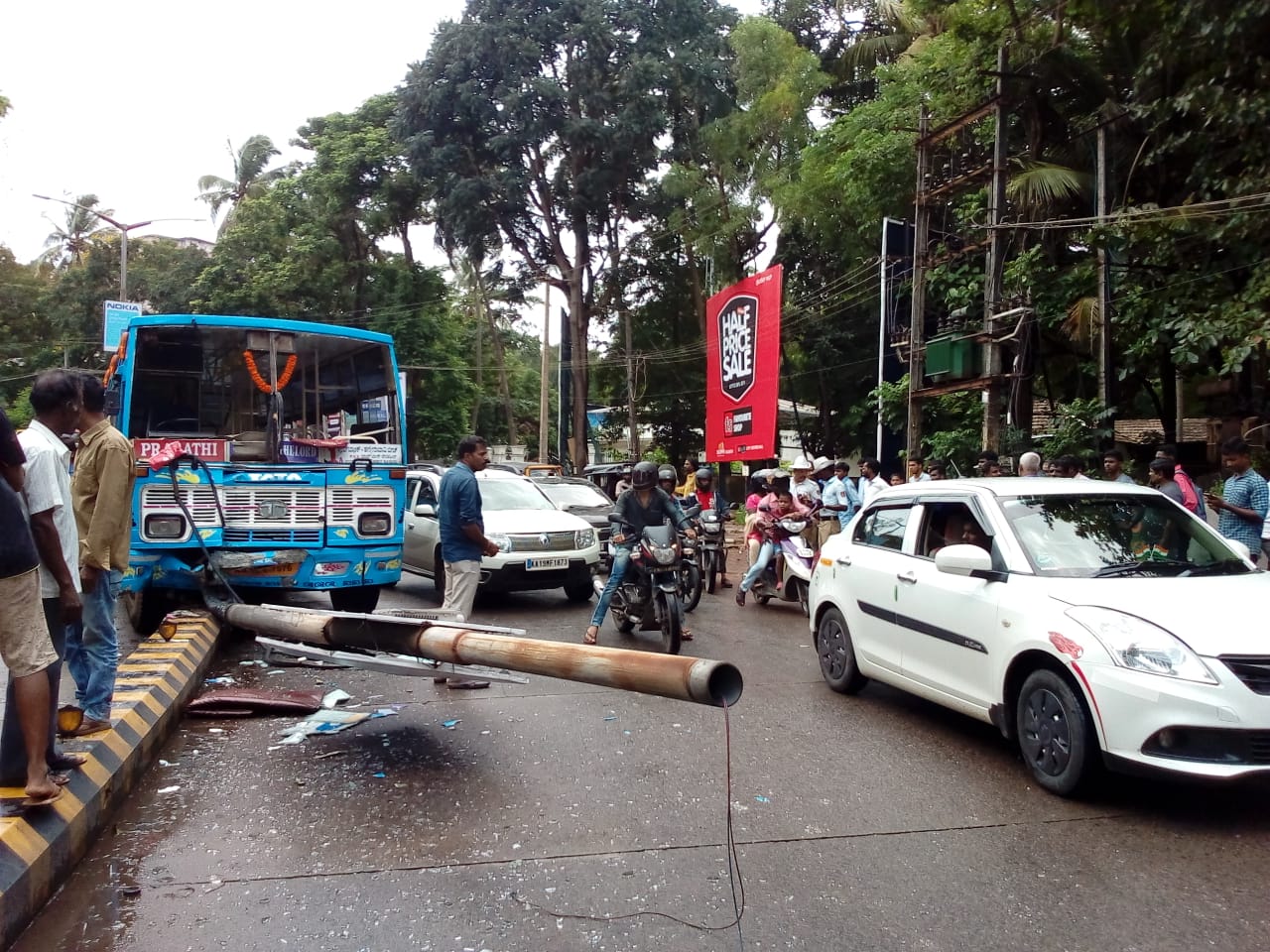 ಮಂಗಳೂರು: ಬೀದಿದೀಪದ ವಿದ್ಯುತ್ ಕಂಬಕ್ಕೆ ಬಸ್ ಢಿಕ್ಕಿ