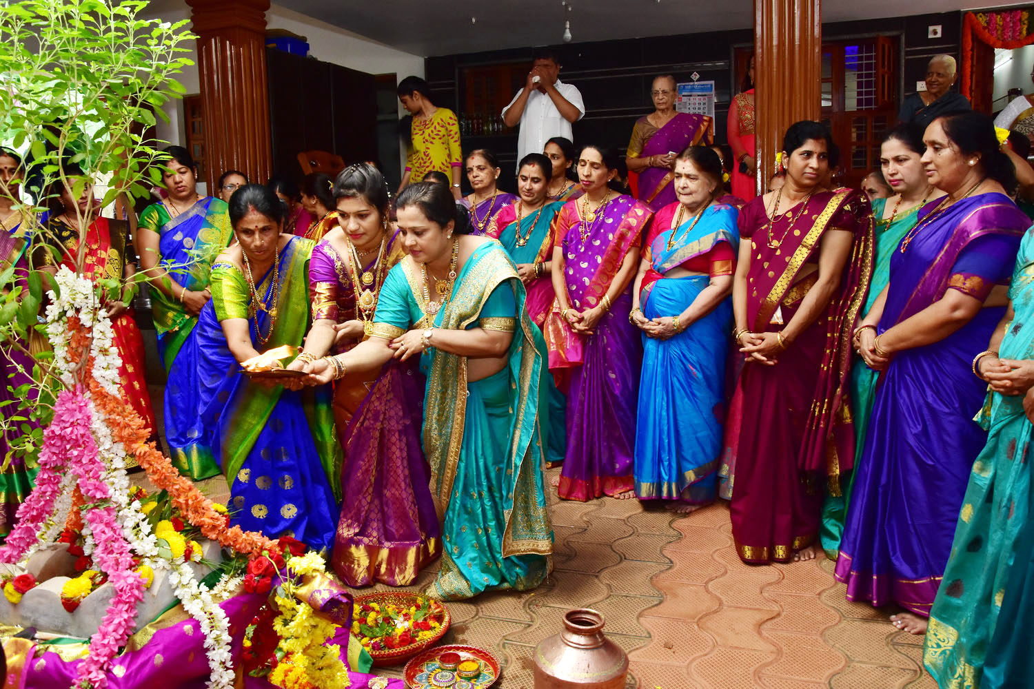 ಮುತ್ತೈದೆಯರೆಲ್ಲ ಸೇರಿ ಶ್ರಾವಣ ಮಾಸದಲ್ಲಿ ಪ್ರಕೃತಿಯಲ್ಲಿ ಸಿಗುವ ವಿವಿಧ ಬಗೆಯ ಪುಷ್ಪಗಳಾದ ರಥಪುಷ್ಪ, ಗರಿಕೆ, ಶಂಖಪುಷ್ಪ, ರತ್ನಗಂಧಿ, ಸುಗಂಧ ರಾಜ, ಆರತಿ, ಅನ್ವಾಲಿ, ಕಣಗಿಲೆ, ಕರವೀರ, ಗೌರಿ ಹೂ, ಸಣ್ಣಗುಲಾಬಿಗಳನ್ನು ಬಾಳೆ ನಾರಿನಿಂದ ಕಟ್ಟಿ ಚೂಡಿಯನ್ನು ತಯಾರಿಸಿ ತುಳಸಿ ಕಟ್ಟೆಗೆ ಸಮರ್ಪಿಸಿ ನೀರೆರೆದರು. ದೇವರ ಸಂಕೀರ್ತನೆ ಪಠಿಸುತ್ತ ಪೂಜೆ ಮಾಡಿ, ನಂತರ ಹೊಸ್ತಿಲಲ್ಲಿ ಇಟ್ಟು ಪೂಜೆ ಮಾಡಿ ದೇವರಿಗೆ ಸಮರ್ಪಿಸಿದರು.