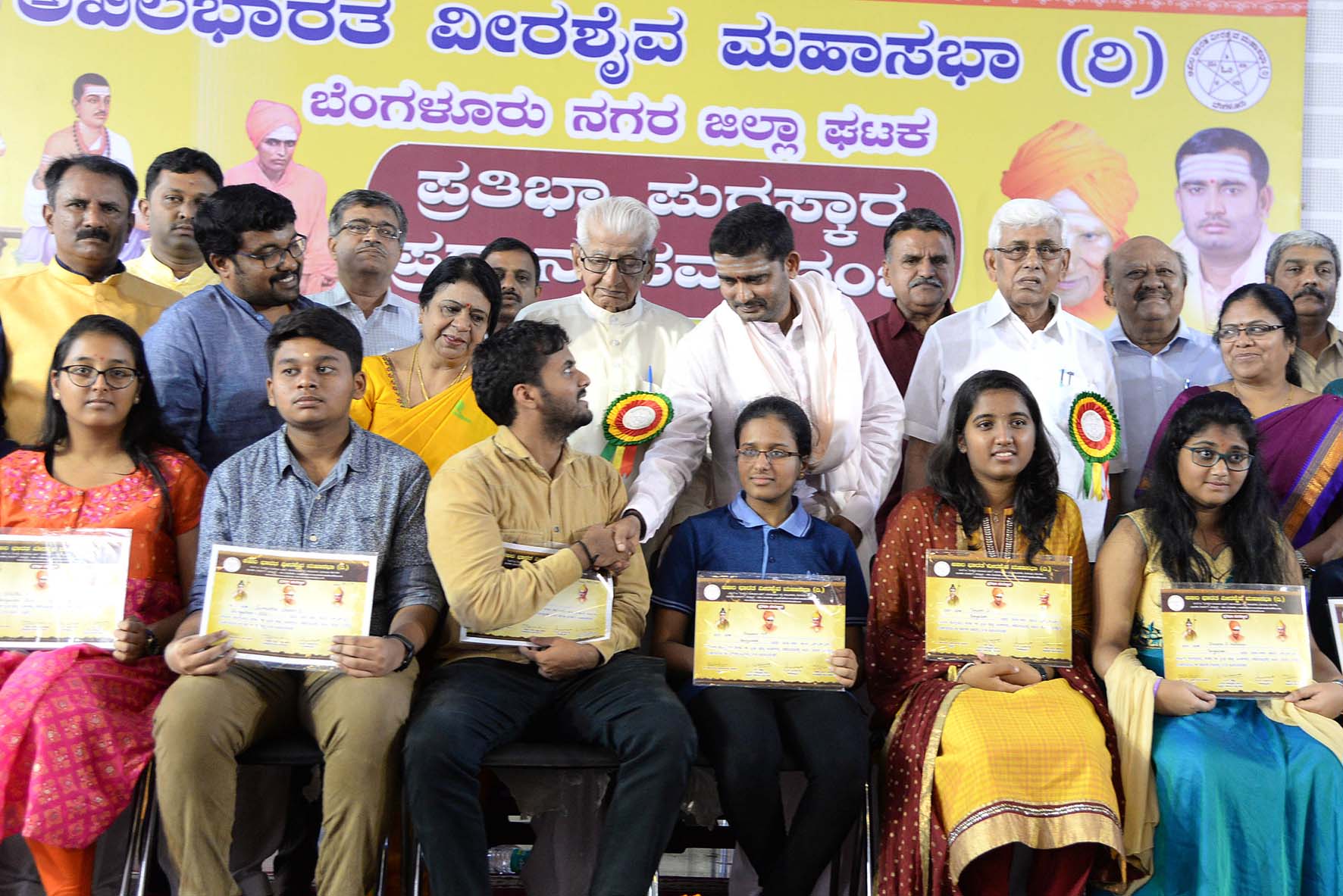 ರವಿವಾರ ವಿಜಯನಗರದ ಬಸವೇಶ್ವರ ಸುಜ್ಞಾನ ಮಂಟಪದಲ್ಲಿ ಅಖಿಲ ಭಾರತ ವೀರಶೈವ ಮಹಾಸಭಾ ಆಯೋಜಿಸಿದ್ದ ಪ್ರತಿಭಾ ಪುರಸ್ಕಾರ ಸಮಾರಂಭದಲ್ಲಿ ಎಸೆಸೆಲ್ಸಿ, ಪಿಯುಸಿ ಪರೀಕ್ಷೆಯಲ್ಲಿ ಶೇ.95ಕ್ಕೂ ಹೆಚ್ಚು ಅಂಕ ಗಳಿಸಿದ್ದ ವಿದ್ಯಾರ್ಥಿಗಳಿಗೆ ಪ್ರತಿಭಾ ಪುರಸ್ಕಾರ ನೀಡಿ ಮಾತನಾಡಿದ ಅವರು, ಬಡವ, ಬಲ್ಲಿದ, ಜಾತಿ, ಮತ, ಬೇಧವೆನ್ನದೆ ಎಲ್ಲವನ್ನು ಒಪ್ಪಿಕೊಂಡಿರುವ ನಮ್ಮ ಸಮಾಜ ಈ ದೇಶಕ್ಕೆ ಒಳ್ಳೆಯ ಕೊಡುಗೆ ನೀಡಿದೆ ಎಂದು ಹೇಳಿದರು.