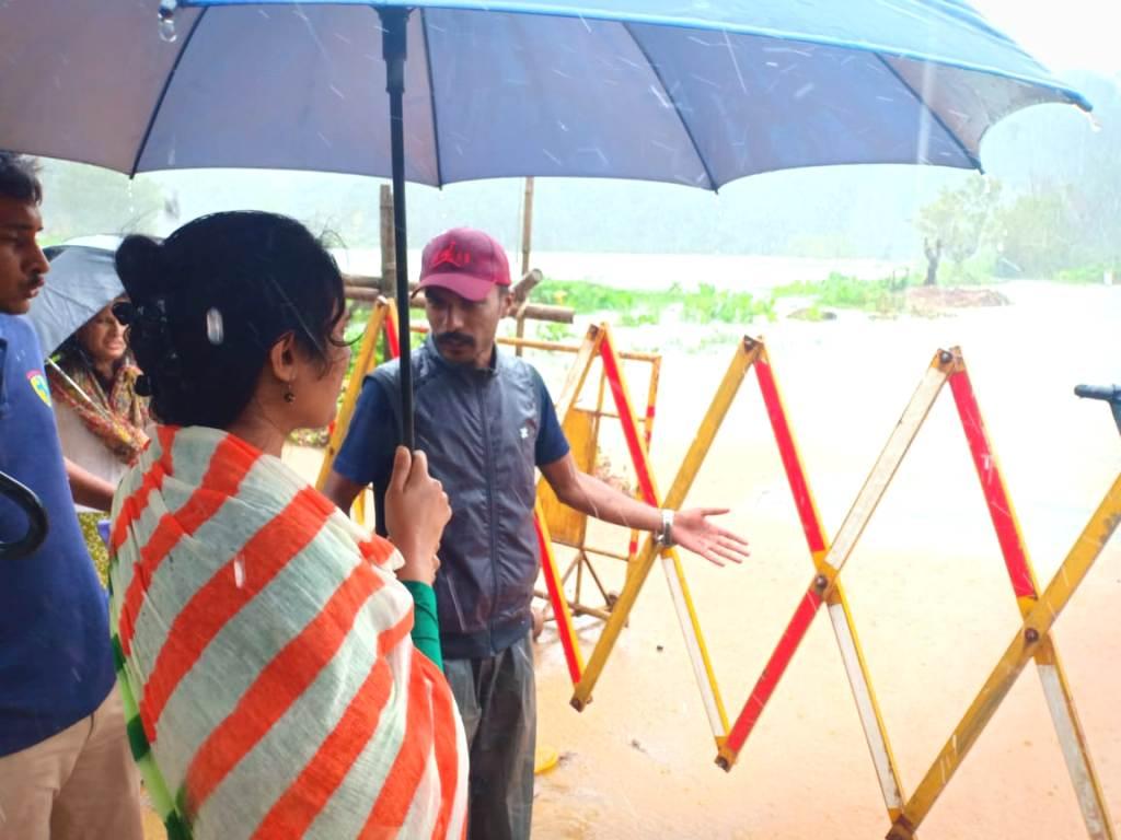 ಜಿಲ್ಲಾಧಿಕಾರಿ ಅನೀಸ್ ಕಣ್ಮಣಿ ಜಾಯ್, ಜಿ.ಪಂ.ಸಿಇಒ ಕೆ.ಲಕ್ಷ್ಮೀಪ್ರಿಯಾ ಅವರು ಸೋಮವಾರ ಭಾಗಮಂಡಲಕ್ಕೆ ಭೇಟಿ ನೀಡಿ ಪ್ರವಾಹ ಪರಿಸ್ಥಿತಿಯನ್ನು ಅವಲೋಕಿಸಿದರು. ರಕ್ಷಣಾ ತಂಡಗಳು ಕೈಗೊಂಡಿರುವ ಮುಂಜಾಗ್ರತಾ ಕ್ರಮಗಳನ್ನು ಪರಿಶೀಲಿಸಿದರು. ಬಳಿಕ ಶ್ರೀ ಭಗಂಡೇಶ್ವರ ದೇವಾಲಯದಲ್ಲಿ ವಿಶೇಷ ಪೂಜೆ ಸಲ್ಲಿಸಿ ಬಳಿಕ ಭಾಗಮಂಡಲ ದೇವಾಲಯ ವ್ಯವಸ್ಥಾಪನಾ ಸಮಿತಿ ಸಭೆ ನಡೆಸಿದರು. ಅದರಲ್ಲೂ ದಕ್ಷಿಣ ಕೊಡಗಿನಲ್ಲಿ ಧಾರಾಕಾರ ಮಳೆಯಾಗುತ್ತಿದೆ. ಪರಿಣಾಮವಾಗಿ ವೀರಾಜಪೇಟೆಯಿಂದ ಕೇರಳಕ್ಕೆ ಸಂಪರ್ಕ ಕಲ್ಪಿಸುವ ಅಂತರಾಜ್ಯ ಹೆದ್ದಾರಿಯ ಮಾಕುಟ್ಟ ಬಳಿ ರಸ್ತೆ ಕುಸಿದಿದ್ದು, ಈ ಮಾರ್ಗದಲ್ಲಿ ವಾಹನ ಸಂಚಾರ ಸ್ಥಗಿತಗೊಳಿಸಲಾಗಿದೆ.