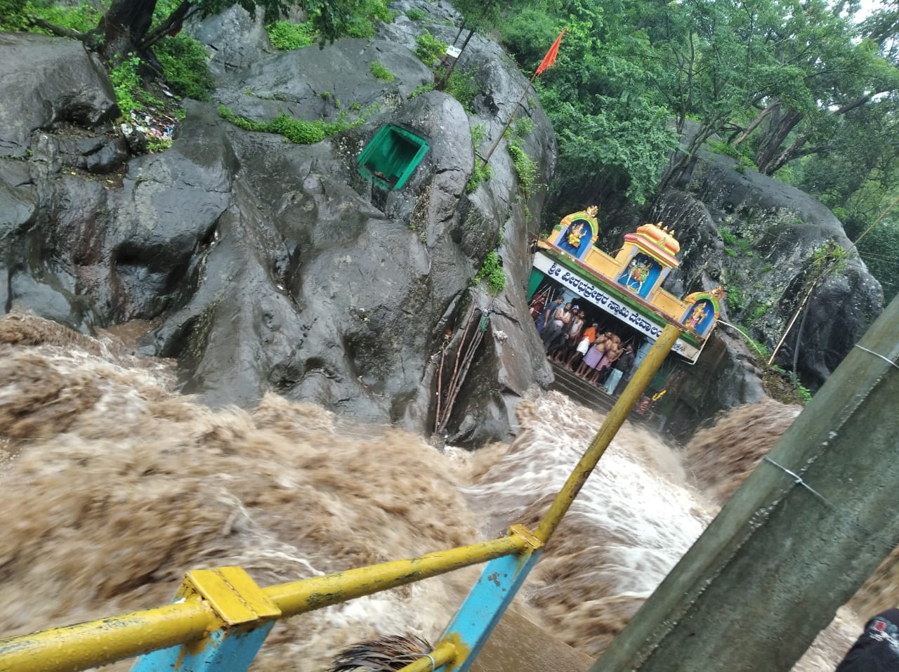 ಪ್ರವಾಸಿಗರ ರಕ್ಷಣೆ: ತರೀಕೆರೆ ತಾಲೂಕಿನ ಕಲ್ಹತ್ತಿಗಿರಿ ಜಲಪಾತದ ಬಳಿಯ ವೀರಭದ್ರೇಶ್ವರ ಸ್ವಾಮಿ ದೇವಾಲಯಕ್ಕೆ ಕೆಲವು ಪ್ರವಾಸಿಗರು ತೆರಳಿದ್ದ ಸಮಯದಲ್ಲಿ ಭಾರೀ ಮಳೆಯಿಂದಾಗಿ ಜಲಪಾತದಲ್ಲಿ ನೀರಿನ ಪ್ರಮಾಣ ದಿಢೀರ್ ಹೆಚ್ಚಾದ ಹಿನ್ನೆಲೆ ದೇವಾಲಯದಿಂದ ಹೊರಬರಲು ಸಾಧ್ಯವಾಗದೆ ಕೆಲವು ಪ್ರವಾಸಿಗರು ಸಿಕ್ಕಿಕೊಂಡಿದ್ದರು. ವಿಚಾರ ತಿಳಿದ ಕೂಡಲೇ ಸ್ಥಳಕ್ಕೆ ತೆರಳಿದ ಅಗ್ನಿಶಾಮಕ ದಳದ ಸಿಬ್ಬಂದಿ ಹಾಗೂ ಪೊಲೀಸರು ಹಗ್ಗದ ಸಹಾಯದಿಂದ ದೇವಾಲಯದಲ್ಲಿ ಸಿಲುಕಿದ್ದ 10ಕ್ಕೂ ಹೆಚ್ಚು ಪ್ರವಾಸಿಗರನ್ನು ರಕ್ಷಿಸಿದರು.