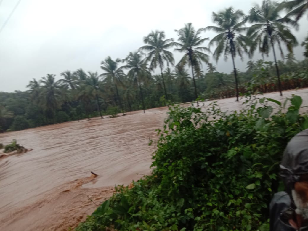 ನದಿಗಳು ಪಾತ್ರ ಬದಲಿಸಿ ಹರಿಯುತ್ತಿದ್ದು ಮನೆ ತೋಟಗಳಿಗೆ ನೀರು ನುಗ್ಗಿದೆ.