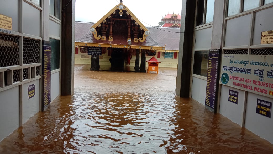 ತಲಕಾವೇರಿ-ಭಾಗಮಂಡಲ ಸುತ್ತಮುತ್ತಲ ಪ್ರದೇಶಗಳಲ್ಲಿ ಕಳೆದ ನಾಲ್ಕು ದಿನಗಳಿಂದ ಧಾರಾಕಾರ ಮಳೆಯಾಗುತ್ತಿರುವುದರಿಂದ ಕಾವೇರಿ-ಕನ್ನಿಕೆ ನದಿಗಳು ಉಕ್ಕಿಹರಿಯುವುದರೊಂದಿಗೆ ಭಾಗಮಂಡಲದ ಭಗಂಡೇಶ್ವರ ದೇವಾಲಯ ಸಂಪೂರ್ಣ ಜಲಾವೃತಗೊಂಡಿರುವುದಲ್ಲದೆ, ಭಗಂಡೇಶ್ವರನ ಗರ್ಭಗುಡಿವರೆಗೂ ನೀರು ನುಗ್ಗಿದೆ. ಕಳೆದ 25 ವರ್ಷಗಳ ಬಳಿಕ ಕಾವೇರಿ ಶಿವನ ಪಾದ ಸ್ಪರ್ಶಿಸಿರುವುದಾಗಿ ಅಲ್ಲಿನ ಅರ್ಚಕರು ತಿಳಿಸಿದ್ದಾರೆ.