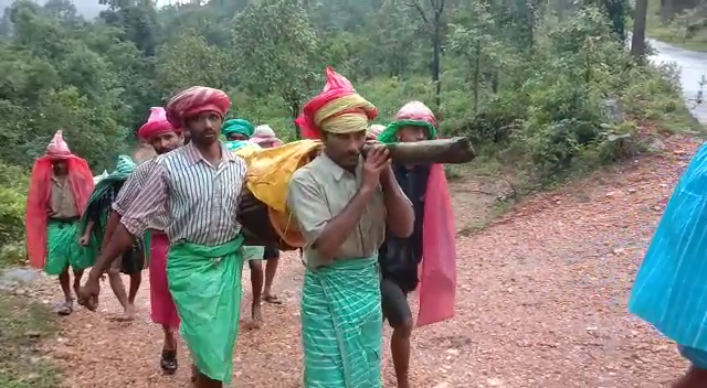 ಮನೆ ಕುಸಿತ: ಗಾಯಾಳು ಮಹಿಳೆಯನ್ನು 10 ಕಿ.ಮೀ ಹೆಗಲ ಮೇಲೆ ಹೊತ್ತು ತಂದ ಗ್ರಾಮಸ್ಥರು