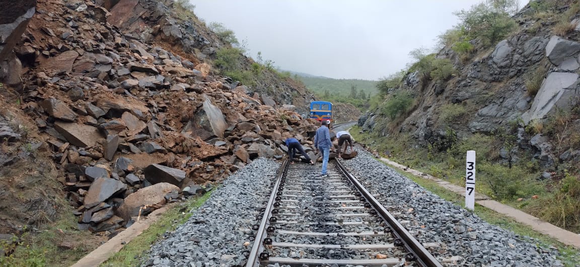 ಚಿಕ್ಕಮಗಳೂರು ತಾಲೂಕಿನಾದ್ಯಂತ ಶುಕ್ರವಾರ ಧಾರಾಕಾರ ಮಳೆಯಾಗಿದೆ. ಮಧ್ಯಾಹ್ನದ ನಂತರ ನಗರದಲ್ಲಿ ಮಳೆ ಆರ್ಭಟ ಹೆಚ್ಚಿತ್ತು. ತಾಲೂಕಿನ ಕಣಿವೆಹಳ್ಳಿ ಸಮೀಪ ರೈಲ್ವೇಹಳಿ ಮೇಲೆ ಗುಡ್ಡ ಕುಸಿದು ರೈಲು ಸಂಚಾರವೂ ಸ್ಥಗಿತಗೊಂಡಿದೆ. ಪಟ್ಟಣ ಸಮೀಪ ಹಿರೇಮಗಳೂರು ಬಡಾವಣೆಯಲ್ಲಿ ಮನೆಯೊಂದು ಕುಸಿದ ಪರಿಣಾಮ ಅಪಾರ ನಷ್ಟ ಸಂಭವಿಸಿದೆ. ಇನ್ನು ಕಡೂರು, ತರೀಕೆರೆ ತಾಲೂಕುಗಳ ವ್ಯಾಪ್ತಿಯಲ್ಲೂ ಶುಕ್ರವಾರ ಧಾರಾಕಾರ ಮಳೆಯಾಗಿದೆ. ಮಲೆನಾಡು ಭಾಗದಲ್ಲಿ ಧಾರಾಕಾರ ಮಳೆಯಂದಾಗಿ ಮರಗಳು ವಿದ್ಯುತ್ ಕಂಬಗಳ ಮೇಲೆ ಉರುಳಿ ಇಡೀ ಮಲೆನಾಡು ಕತ್ತಲೆಯಲ್ಲಿ ಮುಳುಗಿದೆ.
