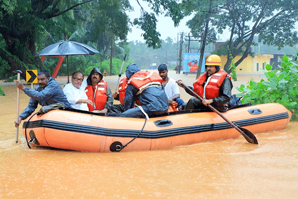 ಭಂಡಾರಿಬೆಟ್ಟು: ಜಲಾವೃತ ಮನೆಯಿಂದ ಜನಾರ್ದನ ಪೂಜಾರಿ ಕುಟುಂಬದ ರಕ್ಷಣೆ