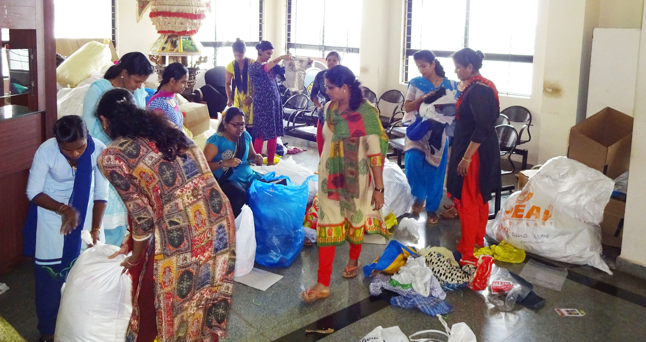 ನಿರಾಶ್ರಿತರಿಗಾಗಿ ಸಂಘ ಸಂಸ್ಥೆಗಳು ಮತ್ತು ನಾಗರಿಕರು ವಿವಿಧ ಸಾಮಗ್ರಿ ಗಳನ್ನು ನೀಡುತ್ತಿದ್ದು, ಈ ಸಾಮಗ್ರಿಗಳನ್ನು ಸ್ವೀಕರಿಸಿ ಅವುಗಳನ್ನು ಪ್ರತ್ಯೇಕವಾಗಿ ವಿಂಗಡಿಸಿ, ವಸ್ತುಗಳು ಹಾಳಾಗದಂತೆ ಒಂದೇ ಬಗೆಯ ವಸ್ತುಗಳನ್ನು ಸೂಕ್ತ ರೀತಿಯಲ್ಲಿ ಪ್ಯಾಂಕಿಂಗ್ ಮಾಡಿ, ಲಾರಿಯಲ್ಲಿ ಜೋಡಿಸಲಾಗುತ್ತಿದೆ. ಈಗಾಗಲೇ ಮಡಿಕೇರಿ, ಬಾಗಲಕೋಟೆ ಹಾಗೂ ಚಿಕ್ಕಮಗಳೂರು ಜಿಲ್ಲೆಯ ನಿರಾಶ್ರಿತರಿಗಾಗಿ ಸುಮಾರು 1500ಕ್ಕೂ ಹೆಚ್ಚು ಟನ್ ಸಾಮಗ್ರಿಗಳನ್ನು 3 ಲೋಡ್ಗಳಲ್ಲಿ ಕಳುಹಿಸಿಕೊಡಲಾಗಿದೆ.