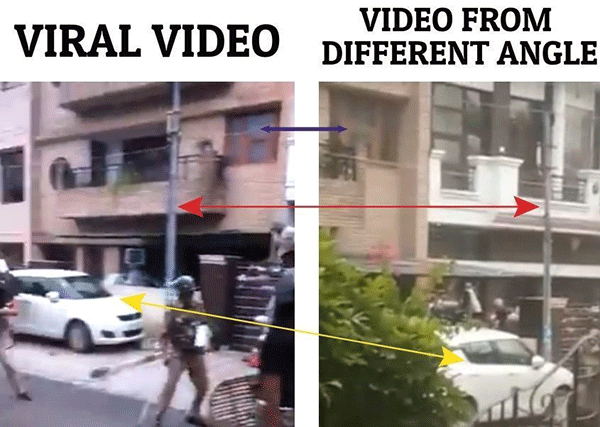 ಆಲ್ಟ್ನ್ಯೂಸ್ ಪತ್ತೆ ಮಾಡಿದಂತೆ ಅದೇ ಘಟನೆಯನ್ನು ಇನ್ನೊಂದು ಕೋನದಿಂದ ಚಿತ್ರೀಕರಿಸಲಾಗಿದೆ. ಔಟ್ಲುಕ್ ಇದನ್ನು ಅಪ್ಲೋಡ್ ಮಾಡಿತ್ತು. ಇದೀಗ ವೈರಲ್ ಆಗಿರುವ ವೀಡಿಯೊದ 13ನೇ ಸೆಕೆಂಡ್ನಲ್ಲಿ ಅದೇ ಬೀದಿ ಕಂಡುಬರುತ್ತಿದೆ. ಮೂಲ ವೀಡಿಯೊ ಹಾಗೂ ಕೊಲ್ಯಾಜ್ ಮಾಡಲಾದ ವೀಡಿಯೊ ನಡುವಿನ ಸಾಮ್ಯತೆಯನ್ನು ಕಾಣಬಹುದಾಗಿದೆ.