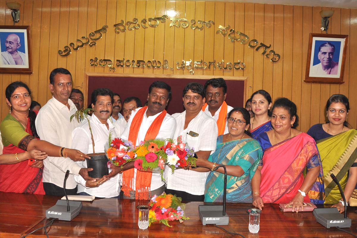 ಜಿಲ್ಲಾ ಪಂಚಾಯತ್ ಸಭಾಂಗಣದಲ್ಲಿ ನಡೆದ ಅಭಿನಂದನಾ ಸಮಾರಂಭದಲ್ಲಿ ಪ್ರಭಾಕರ್, ಬೆಳವಾಡಿ ರವೀಂದ್ರ, ಆನಂದಪ್ಪ, ಜಿ.ಪಂ. ಅಧ್ಯಕ್ಷೆ ಸುಜಾತಾ ಕೃಷ್ಣಪ್ಪ ಮಾತನಾಡಿದರು.