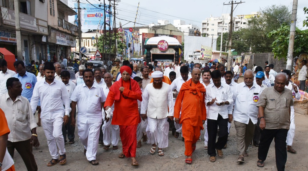 ಮತ್ತೆ ಕಲ್ಯಾಣ ಕಾರ್ಯಕ್ರಮದಲ್ಲಿ ಹಿನ್ನಲೆಯಲ್ಲಿ ಗುರುವಾರ ಸಾಣೇಹಳ್ಳಿ ಡಾ.ಪಂಡಿತಾರಾಧ್ಯ ಶಿವಾಚಾರ್ಯ ಸ್ವಾಮೀಜಿ ನೇತೃತ್ವದಲ್ಲಿ ಸಾಮರಸ್ಯದ ನಡೆಗೆ ಕಾರ್ಯಕ್ರಮ ನಡೆಯಿತು.