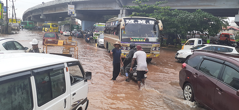 ಕೊಟ್ಟಾರ ಚೌಕಿಯಲ್ಲಿ ರಸ್ತೆಯು ಸಂಪೂರ್ಣವಾಗಿ ನೀರಿನಿಂದ ಆವೃತ್ತವಾಗಿದ್ದು, ವಾಹನಗಳ ಓಡಾಟಕ್ಕೆ ಸಮಸ್ಯೆಯಾಗಿದೆ. ಅಲ್ಲದೆ ಈ ಭಾಗದ