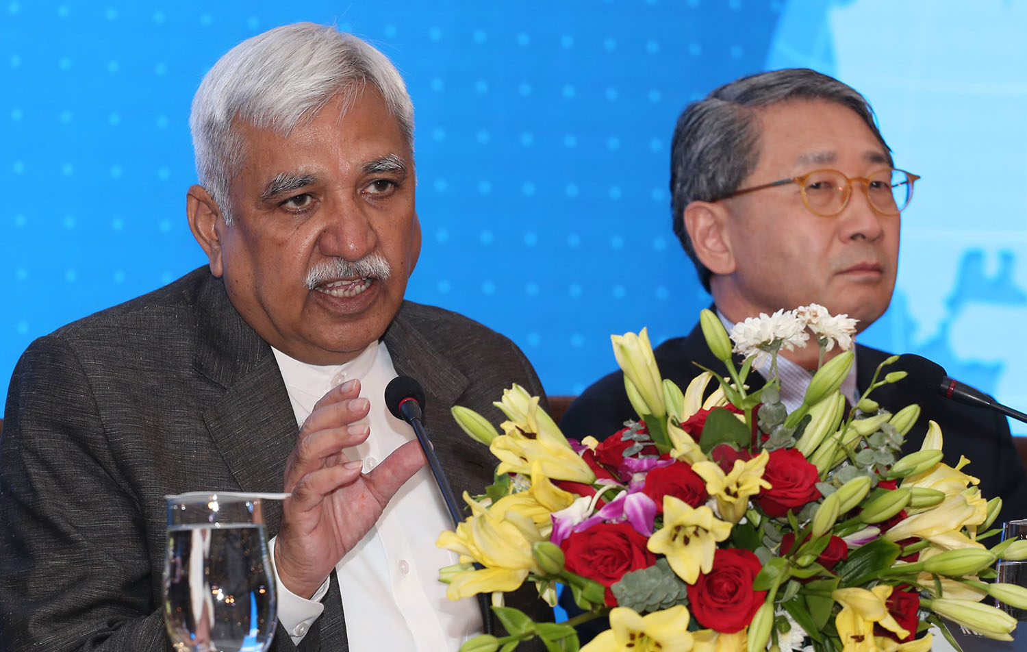ಪತ್ರಿಕಾಗೋಷ್ಠಿಯಲ್ಲಿ ದಕ್ಷಿಣ ಆಫ್ರಿಕಾದ ಚುನಾವಣಾ ಆಯೋಗದ ಮುಖ್ಯಸ್ಥ ಹಾಗೂ ಎ-ವೆಬ್ ಉಪಾಧ್ಯಕ್ಷ ಗ್ಲೆನ್ವುಮಾ ಮಶಿನಿನಿ, ಮಹಾ ಪ್ರಧಾನ ಕಾರ್ಯದರ್ಶಿ ಕೊರಿಯಾ ಗಣರಾಜ್ಯದ ಜೊಂಗ್ಯ್ಯುನ್ ಚೋಯ್, ಭಾರತದ ಚುನಾವಣಾ ಆಯುಕ್ತರಾದ ಅಶೋಕ್ ಲವಾಸ, ಸುಶೀಲ್ ಚಂದ್ರ, ಹಿರಿಯ ಉಪ ಚುನಾವಣಾ ಆಯುಕ್ತ ಉಮೇಶ್ ಸಿನ್ಹಾ, ವಕ್ತಾರ ಎಸ್.ಶರಣ್, ರಾಜ್ಯ ಮುಖ್ಯ ಚುನಾವಣಾಧಿಕಾರಿ ಸಂಜೀವ್ ಕುಮಾರ್ ಉಪಸ್ಥಿತರಿದ್ದರು.