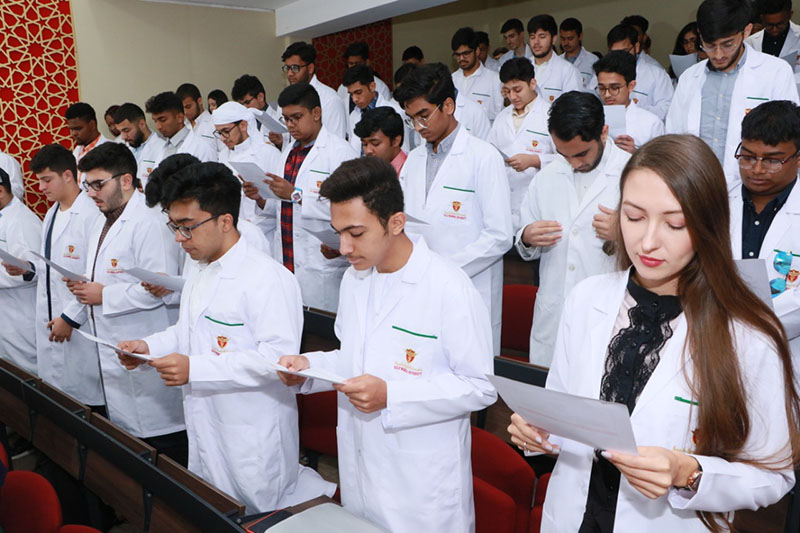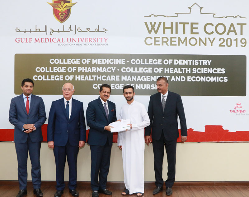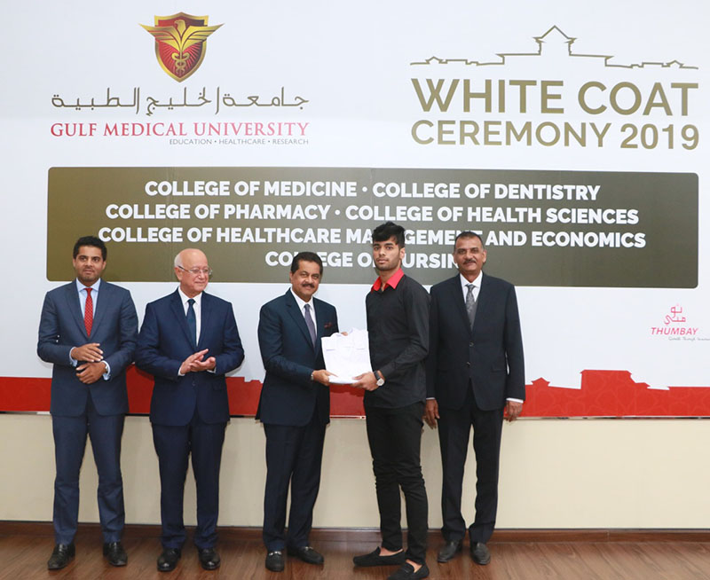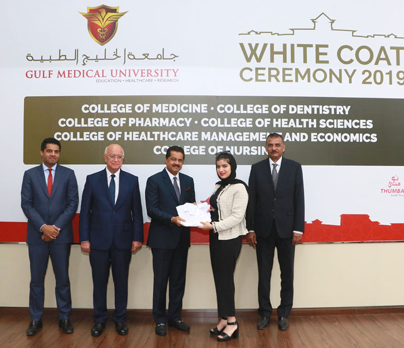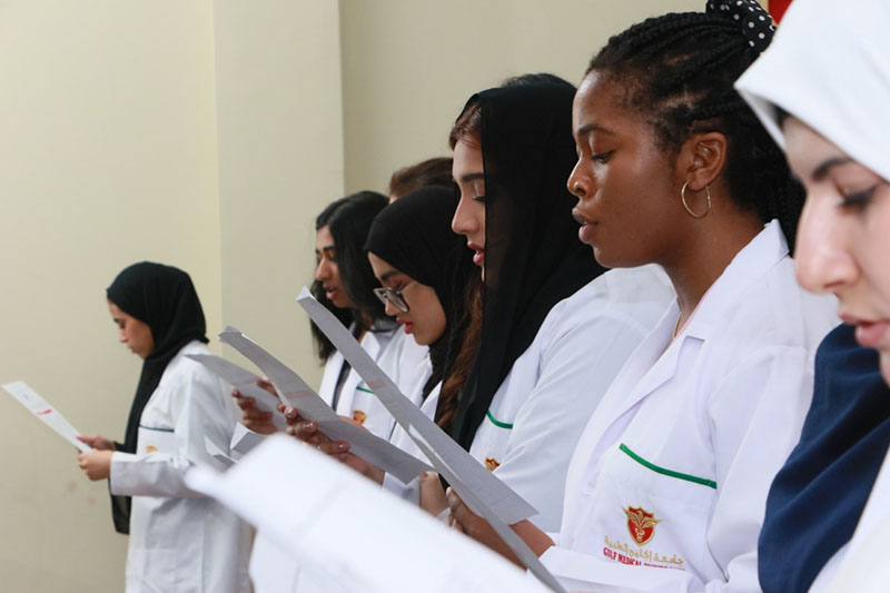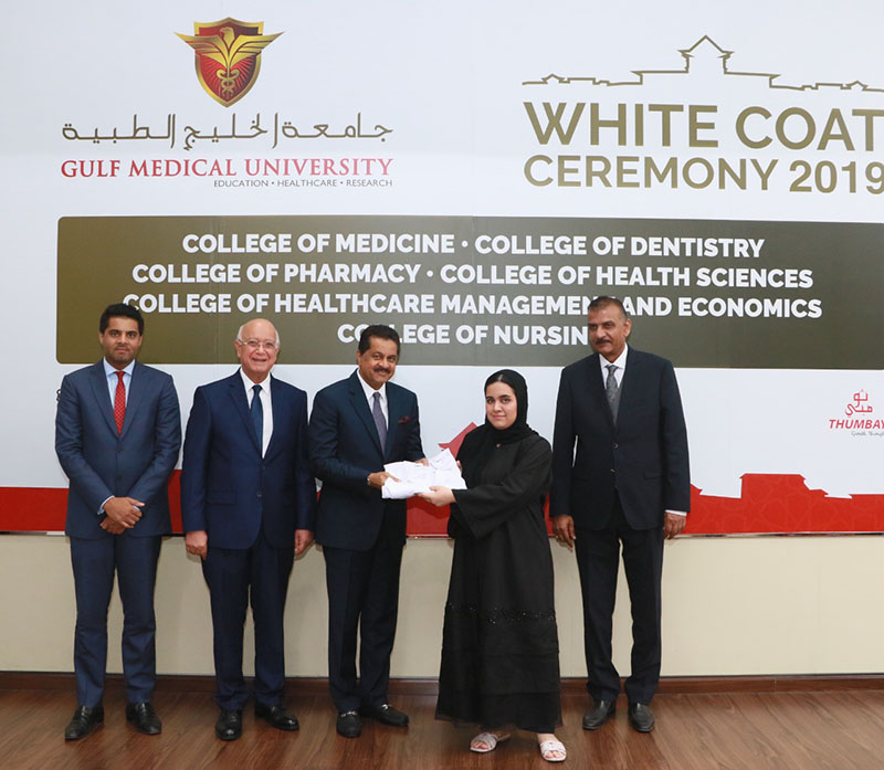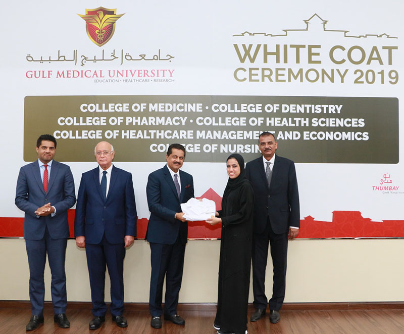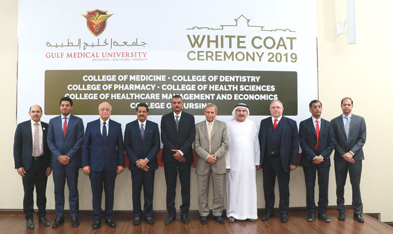 ಅಜ್ಮನ್,ಸೆ.12: ಮಧ್ಯಪ್ರಾಚ್ಯದ ಅಗ್ರಮಾನ್ಯ ವೈದ್ಯಕೀಯ ವಿಶ್ವವಿದ್ಯಾಲಯ ಗಲ್ಫ್ ಮೆಡಿಕಲ್ ಯುನಿವರ್ಸಿಟಿ ಮುಂದಿನ ಶೈಕ್ಷಣಿಕ ವರ್ಷದ ವಿದ್ಯಾರ್ಥಿಗಳನ್ನು ಸೆಪ್ಟಂಬರ್ 12ರಂದು ನಡೆದ ವೈಟ್ ಕೋಟ್ ಸಮಾರಂಭದಲ್ಲಿ ಸ್ವಾಗತಿಸಿತು. ಈ ಸಂದರ್ಭದಲ್ಲಿ ವಿದ್ಯಾರ್ಥಿಗಳು ಆರೋಗ್ಯಸೇವೆ ವೃತ್ತಿಭವಿಷ್ಯಕ್ಕೆ ತಮ್ಮ ಪ್ರವೇಶದ ಚಿಹ್ನೆಯಾಗಿ ಬಿಳಿ ಕೋಟ್ಗಳನ್ನು ಪಡೆದರು.