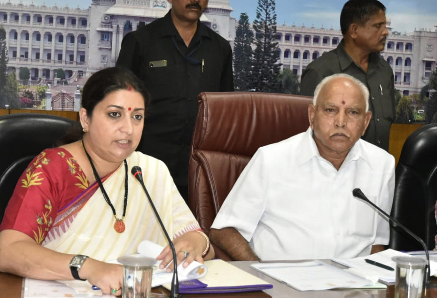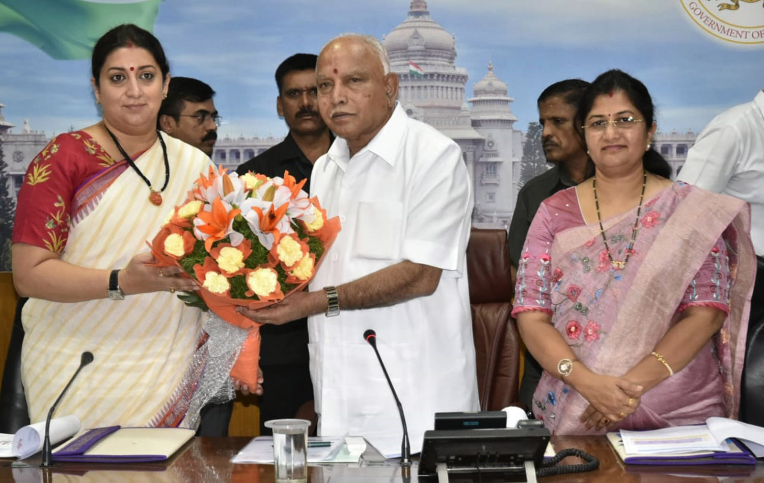 ಬೆಂಗಳೂರು, ಸೆ.13: ಕೇಂದ್ರ ಮಹಿಳಾ ಮತ್ತು ಮಕ್ಕಳ ಕಲ್ಯಾಣ ಹಾಗೂ ಜವಳಿ ಸಚಿವೆ ಸ್ಮತಿ ಇರಾನಿ, ಮುಖ್ಯಮಂತ್ರಿ ಬಿ.ಎಸ್.ಯಡಿಯೂರಪ್ಪ ಸಮ್ಮುಖದಲ್ಲಿ ಕೇಂದ್ರ ಸರಕಾರದ ಪೋಷಣ್ ಅಭಿಯಾನ ಯೋಜನೆ ಪ್ರಗತಿ ಬಗ್ಗೆ ಚರ್ಚಿಸಿದರು.