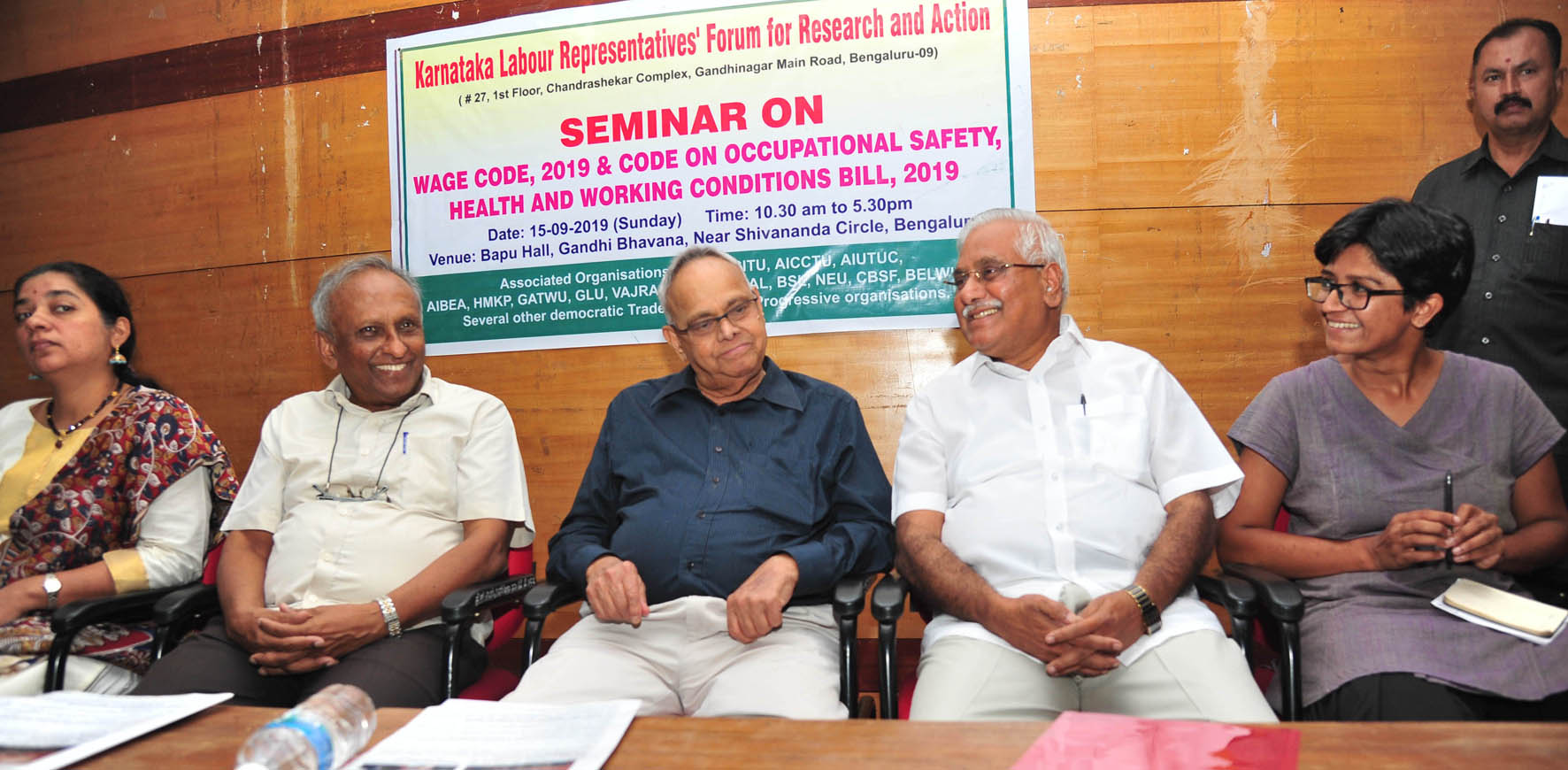 ರವಿವಾರ ನಗರದ ಗಾಂಧಿ ಭವನದಲ್ಲಿ ಕರ್ನಾಟಕ ಲೇಬರ್ ರೆಪ್ರೆಸಂಟೇಟಿವ್ಸ್ ಫೋರಂ ರಿಸರ್ಚ್ ಅಂಡ್ ಆಕ್ಷನ್ನಿಂದ ಆಯೋಜಿಸಿದ್ದ ‘ಕೇಂದ್ರ ಸರಕಾರದ ನೂತನ ಕಾರ್ಮಿಕ ಕಾಯ್ದೆ -2019’ರ ಕುರಿತ ವಿಚಾರ ಸಂಕಿರಣದಲ್ಲಿ ಭಾಗವಹಿಸಿ ಅವರು ಮಾತನಾಡಿದರು.