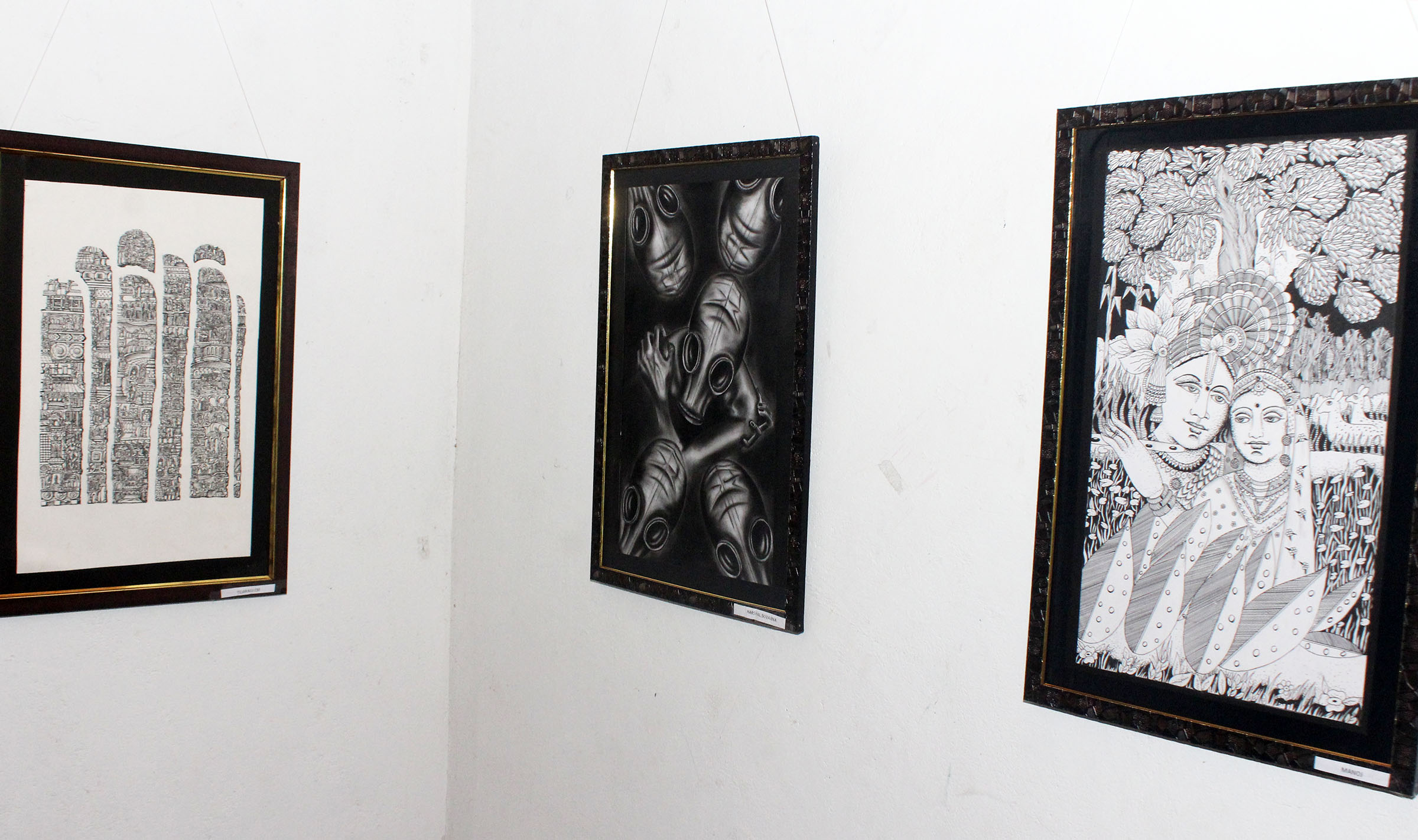 ಒಟ್ಟು 18 ಚಿತ್ರಕಲಾ ವಿದ್ಯಾರ್ಥಿಗಳು ಪೆನ್ ಆ್ಯಂಡ್ ಆರ್ಟ್ನಲ್ಲಿ 32 ಕಪ್ಪು ಬಿಳುಪಿನ ಕಲಾಕೃತಿಗಳನ್ನು ರಚಿಸಿದ್ದು, ಇವುಗಳು ಪ್ರಕೃತಿ ಹಾಗೂ ಮಾನವ ಜೀವನದ ಮೇಲೆ ಬೆಳಕು ಚೆಲ್ಲುತ್ತಿವೆ. ಪ್ರಕೃತಿ ಜೊತೆ ಬದುಕು, ನಗರದ ಒತ್ತಡದ ಜೀವನ, ನಗರೀಕರಣ, ಪ್ರಕೃತಿಯ ಮೇಲಿನ ದಾಳಿ, ಭಾರತೀಯ ವಾಸ್ತು ಶಿಲ್ಪ ಹೀಗೆ ವಿವಿಧ ರೀತಿಯ ಕಲಾಕೃತಿಗಳು ಗಮನ ಸೆಳೆದವು.