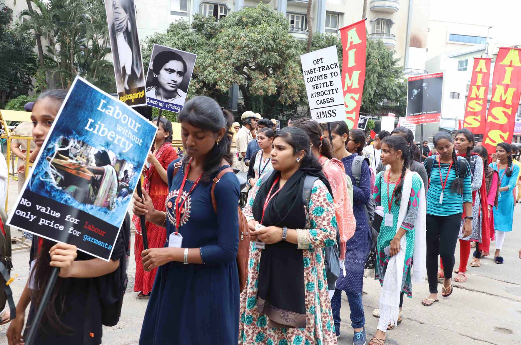 ಮಹಿಳೆಯರ ಸಂರಕ್ಷಣೆಗೆ ಒತ್ತಾಯಿಸಿ ಎಐಎಂಎಸ್ಎಸ್ ನೇತೃತ್ವದಲ್ಲಿ ಪ್ರತಿಭಟನಾ ರ್ಯಾಲಿ