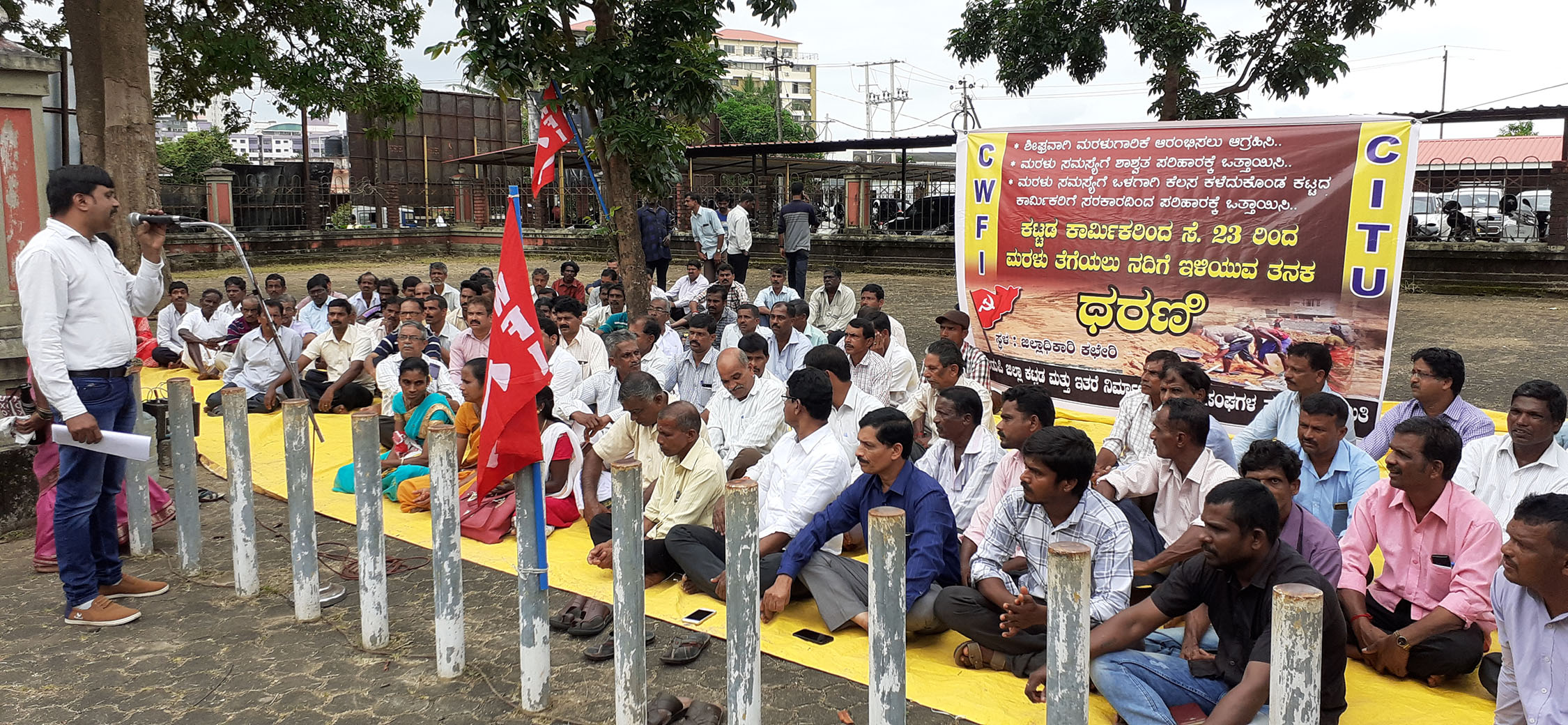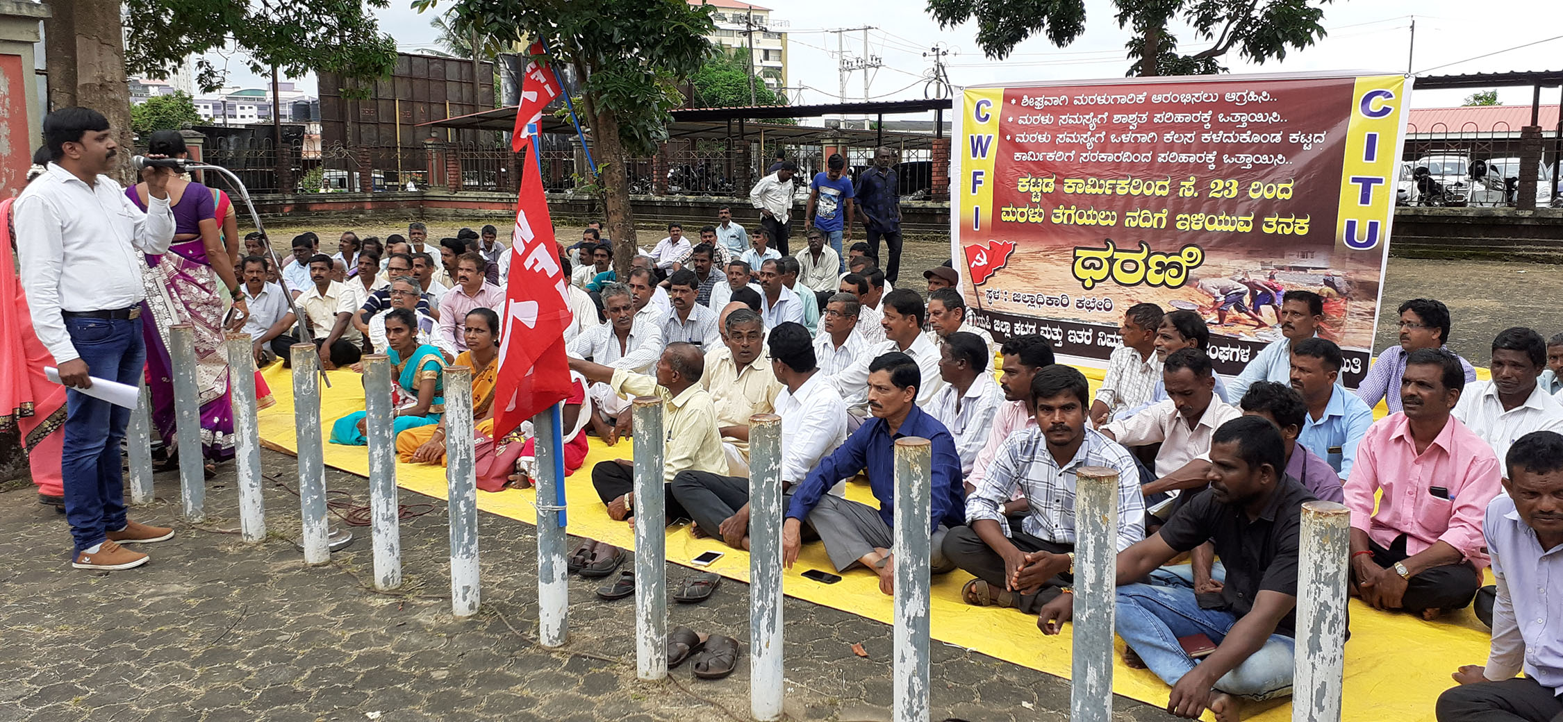 ಉಡುಪಿ: ಕೂಡಲೇ ಮರಳುಗಾರಿಕೆ ಪ್ರಾರಂಭಿಸಲು ಕಟ್ಟಡ ಕಾರ್ಮಿಕರ ಧರಣಿ