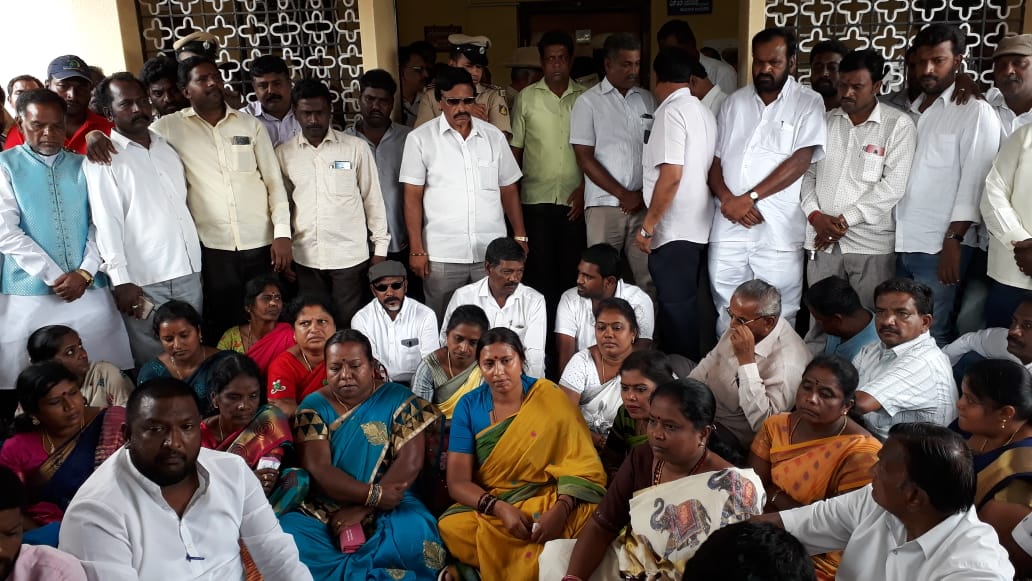 ಕೋಲಾರದ ಲೋಕೋಪಯೋಗಿ ಇಲಾಖೆ ಮುಂದೆ ನೂರಾರು ಕಾರ್ಯಕರ್ತರೊಂದಿಗೆ ಅವರು ಮೌನ ಪ್ರತಿಭಟನೆ ನಡೆಸಿದರು.