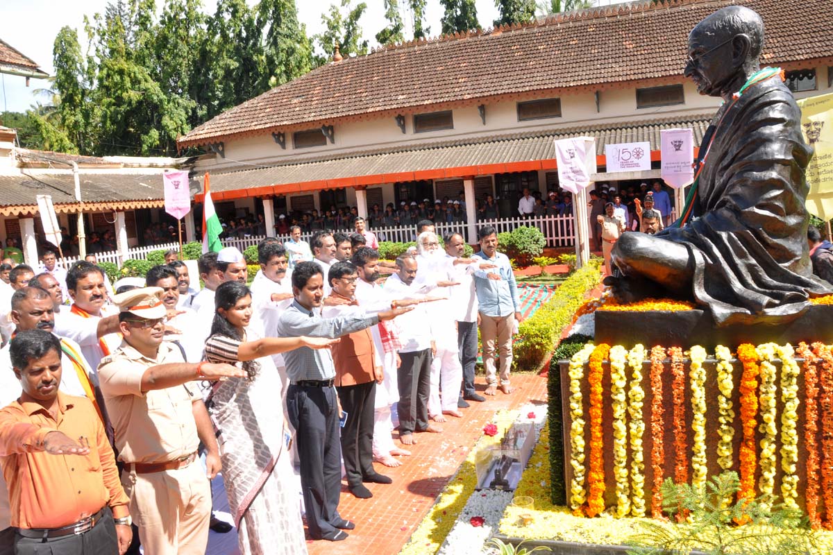 ಜಿಲ್ಲಾಡಳಿತ, ಜಿಪಂ, ವಾರ್ತಾ ಮತ್ತು ಸಾರ್ವಜನಿಕ ಸಂಪರ್ಕ ಇಲಾಖೆ, ಕನ್ನಡ ಮತ್ತು ಸಂಸ್ಕೃತಿ ಇಲಾಖೆ, ನಗರಸಭೆ ಹಾಗೂ ವಿವಿಧ ಇಲಾಖೆಗಳ ವತಿಯಿಂದ ಬುಧವಾರ ಹಮ್ಮಿಕೊಂಡಿದ್ದ 150ನೇ ಗಾಂಧೀಜಿ ಜಯಂತಿ ಕಾರ್ಯಕ್ರಮದ ಅಂಗವಾಗಿ ಜಿಲ್ಲಾಧಿಕಾರಿ ಕಚೇರಿ ಆವರಣದಲ್ಲಿನ ರಾಷ್ಟ್ರಪಿತ ನೆನಪಿನಂಗಳದಲ್ಲಿ ಗಾಂಧೀಜಿ ಜನ್ಮ ದಿನಾಚರಣೆ ಹಾಗೂ ಲಾಲ್ ಬಹದ್ದೂರ್ ಶಾಸ್ತ್ರಿಯವರ 115ನೇ ಜನ್ಮ ದಿನಾಚರಣೆ ಸಂದರ್ಭ ಮಹಾತ್ಮ ಗಾಂಧೀಜಿ ಅವರ ಪುತ್ಹಳಿಗೆ ಮಾಲಾರ್ಪಣೆ ಹಾಗೂ ಪುಷ್ಪಾರ್ಚನೆ ಸಲ್ಲಿಸಿದ ಬಳಿಕ ಮಾತನಾಡಿದ ಅವರು, ಮಹಾತ್ಮ ಗಾಂಧೀಜಿಯವರ ಪರೋಪಕಾರ, ಅಹಿಂಸೆ, ಶಾಂತಿಯಂತಹ ಗುಣಗಳನ್ನು ಪ್ರತಿಯೊಬ್ಬರು ಜೀವನದಲ್ಲಿ ಅಳವಡಿಸಿಕೊಂಡಾಗ ಮಾತ್ರ ನಮ್ಮನ್ನು ನಾವು ಗೆಲ್ಲಬಹುದಲ್ಲದೇ ಭಾರತದ ಆತ್ಮ ಶಕ್ತಿಯ ಜಾಗೃತಿ ಮೂಡುತ್ತದೆ ಎಂದು ಹೇಳಿದರು.
