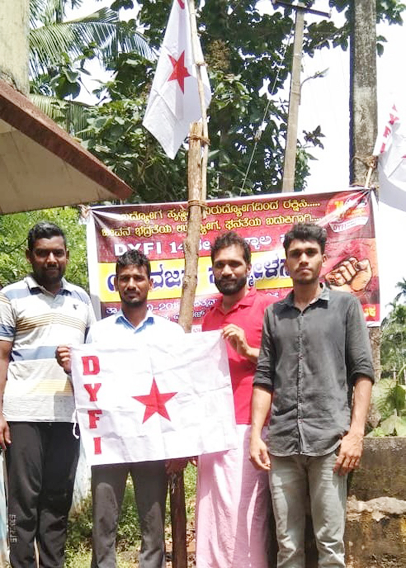 ನರಿಂಗಾನ, ಅ.13: ಅಕ್ಟೋಬರ್ 20ರಂದು ನಡೆಯುವ ಡಿವೈಎಫ್ಐ 14ನೇ ಉಳ್ಳಾಲ ವಲಯ ಸಮ್ಮೇಳನದ ಅಂಗವಾಗಿ ಕೊಲ್ಲರಕೋಡಿಯಲ್ಲಿ ಡಿವೈಎಫ್ಐ ಘಟಕದ ವತಿಯಿಂದ ರವಿವಾರ ಬೆಳಗ್ಗೆ ಧ್ವಜ ದಿನ ಆಚರಿಸಲಾಯಿತು.