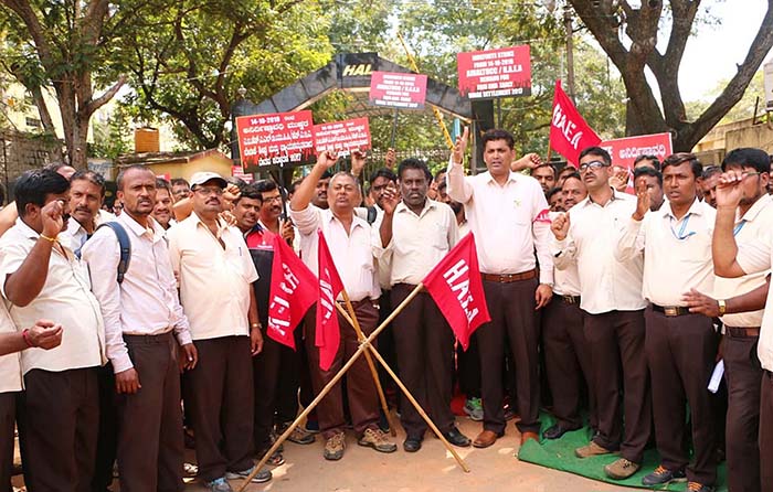 ಸಾರ್ವಜನಿಕ ವಲಯದ ಉದ್ಯಮ ಎಚ್ಎಎಲ್ನ ಉದ್ಯೋಗಿಗಳು ಮತ್ತು ಆಡಳಿತ ಮಂಡಳಿಯ ನಡುವೆ ಸಂಬಳ, ಭಡ್ತ್ತಿ, ಸೇರಿದಂತೆ ಹಲವು ಬೇಡಿಕೆಗಳ ಈಡೇರಿಕೆಗಾಗಿ ಚರ್ಚೆ ನಡೆಯುತ್ತಿದ್ದು, ನೌಕರರ ಬೇಡಿಕೆಗೆ ಆಡಳಿತ ಮಂಡಳಿ ಮನ್ನಣೆ ನೀಡದೆ ಹಠಮಾರಿತನ ಧೋರಣೆ ಮುಂದುವರಿಸಿದ ಹಿನ್ನೆಲೆಯಲ್ಲಿ ಅನಿವಾರ್ಯದಿಂದ ಉದ್ಯೋಗಿಗಳು ಮುಷ್ಕರ ಪ್ರಾರಂಭಿಸಿದ್ದಾರೆ.