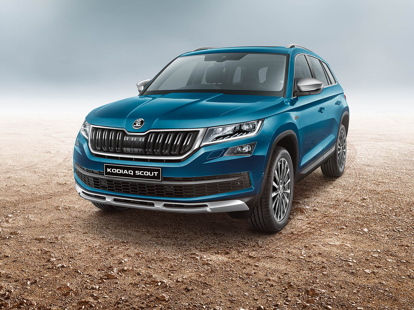 * 2.0 ಟಿಡಿಐ (ಡಿಜಿಎಸ್) ಡೀಸೆಲ್ ಎಂಜಿನ್ ಹೊಂದಿದ ಕೊಡಿಯಾಕ್ ಸ್ಕೌಟ್ ನಾಲ್ಕು ಬಣ್ಣಗಳಲ್ಲಿ ಲಭ್ಯ: ಲಾವಾ ಬ್ಲೂ, ಕ್ವಾರ್ಟ್ಸ್ ಗ್ರೇ, ಮೂನ್ ವೈಟ್ ಮತ್ತು ಮ್ಯಾಜಿಕ್ ಬ್ಲ್ಯಾಕ್.