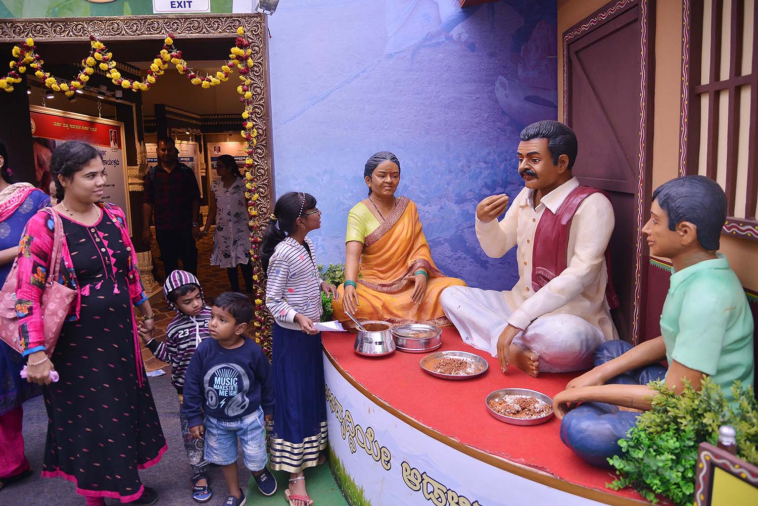 ಕೃಷಿ ತ್ಯಾಜ್ಯದಿಂದ ಕರಕುಶಲ ವಸ್ತು: ಕೃಷಿ ತ್ಯಾಜ್ಯಗಳಾದ ತೆಂಗಿನ ನಾರು, ತೆಂಗಿನ ಚಿಪ್ಪು, ಹರಿದ ಬಟ್ಟೆ, ಹತ್ತಿಯ ಕಾಯಿ ಚಿಪ್ಪೆ, ಅಡಕೆ ಎಲೆ, ಬಾಳೆ ನೀರು, ಭತ್ತದ ತೌಡಿನಿಂದ ತಯಾರಿಸಿರುವ ಆಲಂಕಾರಿಕ ವಸ್ತು, ಗೃಹ ಬಳಕೆಯ ವಸ್ತುಗಳು ಮೇಳದಲ್ಲಿ ಸಾಕಷ್ಟು ಕಣ್ಮನ ಸೆಳೆಯುತ್ತಿವೆ.