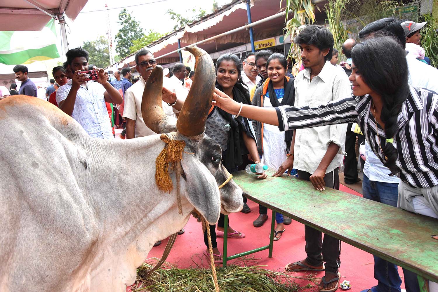 ನಗರ ನಿವಾಸಿಗಳಿಗೆ ತರಹೇವಾರಿ ಜಾನುವಾರುಗಳನ್ನು ಕಣ್ತುಂಬಿಕೊಳ್ಳುವ ಅಪೂರ್ವ ಅವಕಾಶವನ್ನು ಕೃಷಿಮೇಳ ಕಲ್ಪಿಸಿದೆ. ಹೆದರುತ್ತಲೇ ದನಗಳ ಮೈಸವರುತ್ತಾ, ಅವುಗಳಿಗೆ ಹುಲ್ಲು ಹಾಕುತ್ತಾ, ಅವು ಕೊಂಬು ಅಲ್ಲಾಡಿಸಿದಾಗ ದೂರ ಓಡುತ್ತಾ, ಸೆಲ್ಫಿ ತೆಗೆದುಕೊಳ್ಳುತ್ತಾ ಜನ ಸಂಭ್ರಮಿಸಿದರು.