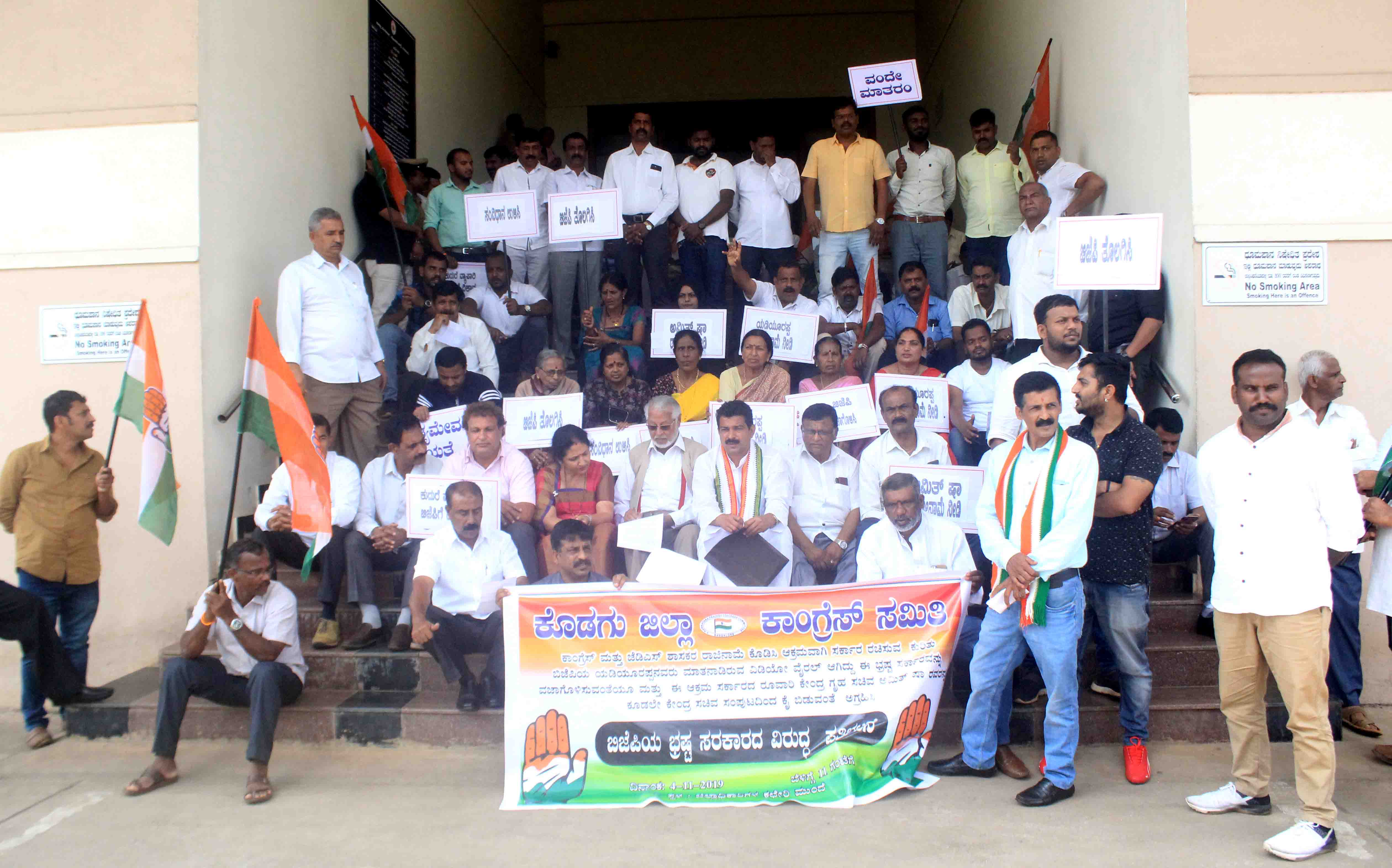 ಅಮಿತ್ ಶಾ, ಬಿಜೆಪಿ ಸರ್ಕಾರ ವಜಾಗೊಳಿಸಲು ಆಗ್ರಹಿಸಿ ಕೊಡಗು ಕಾಂಗ್ರೆಸ್ ಪ್ರತಿಭಟನೆ
