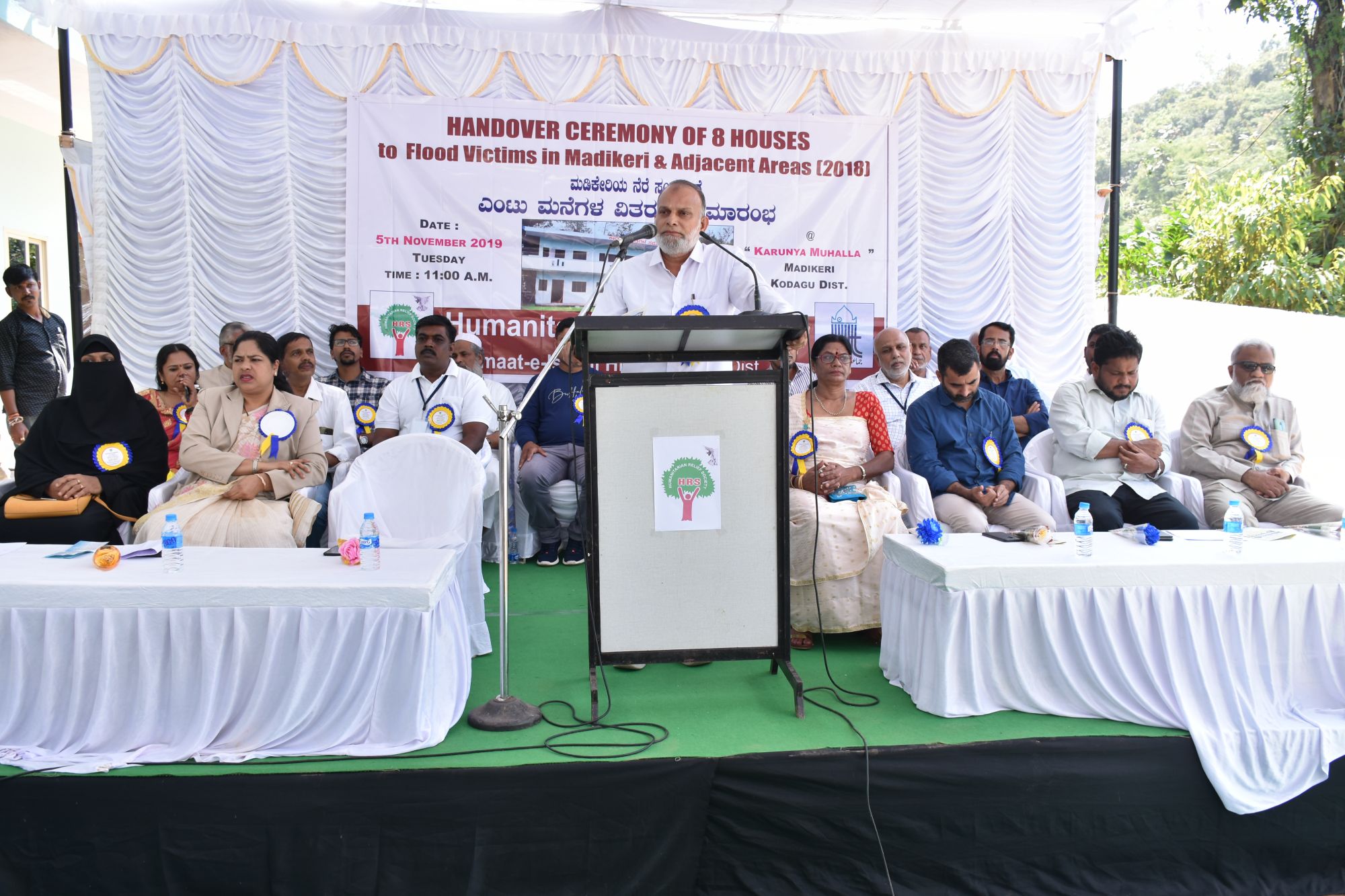 ಜಮಾಅತೇ ಇಸ್ಲಾಮಿ ಹಿಂದ್ನ ಕೊಡಗು ಮತ್ತು ಮಂಗಳೂರು ವಲಯ ಸಂಚಾಲಕ ಅಬ್ದುಸ್ಸಲಾಮ್ ಯು. ಮಾತನಾಡಿ, ಸುಮಾರು 300 ಮಳೆಹಾನಿ ಸಂತ್ರಸ್ತ ಕುಟುಂಬಗಳ ಸರ್ವೆ ನಡೆಸಿ ಅರ್ಹ ಎಂಟು ಫಲಾನುಭವಿಗಳಿಗೆ ಮಡಿಕೇರಿ ಹಾಗೂ ಐದು ಫಲಾನುಭವಿಗಳಿಗೆ ಸಿದ್ದಾಪುರದಲ್ಲಿ ಮನೆಗಳನ್ನು ನಿರ್ಮಿಸಿಕೊಡಲಾಗಿದೆ ಎಂದರು.