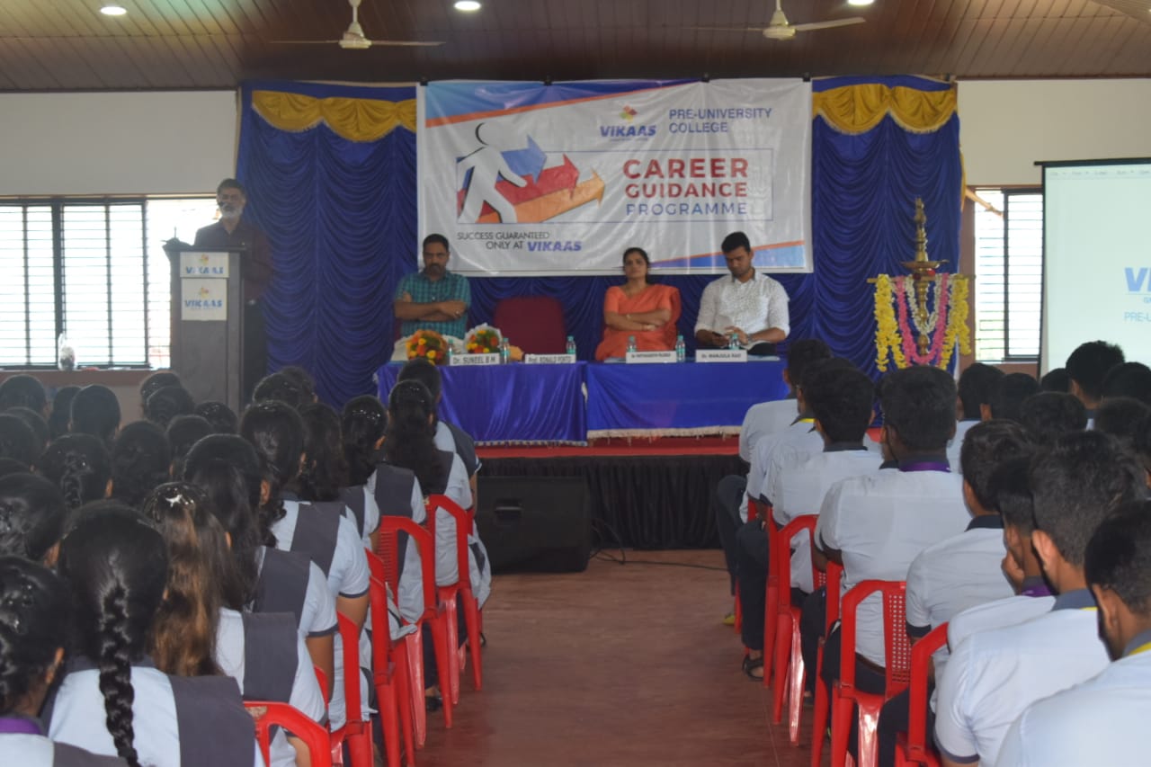 ವಿಕಾಸ್ ಪದವಿ ಪೂರ್ವ ಕಾಲೇಜಿನ ಪ್ರಾಂಶುಪಾಲರಾದ ಡಾ. ಸುನೀಲ್ ಬಿ ಎಮ್ ಅಧ್ಯಕ್ಷತೆ ವಹಿಸಿ ಮಾತನಾಡಿ, ಪಿಯುಸಿ ನಂತರದ ಶಿಕ್ಷಣದ ಸಂಪೂರ್ಣ ಮಾಹಿತಿಯ ಹಾಗೂ ಮಾರ್ಗದರ್ಶನದ ಕೊರತೆಯಿಂದ ವಿದ್ಯಾರ್ಥಿಗಳು ತೊಂದರೆಗೊಳಗಾಗುತ್ತಿದ್ದು, ವೃತ್ತಿ ಮಾರ್ಗದರ್ಶನದ ಕಾರ್ಯಾಗಾರವು ಅವರಿಗೆ ಸಹಕಾರಿಯಾಗಲಿದೆ ಎಂದರು.