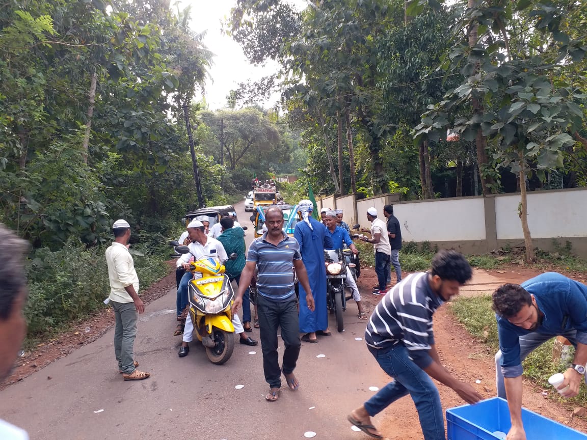 ಕೊಲ್ಲರಕೋಡಿ, ನ.10: ಮೀಲಾದುನ್ನಬಿ ಪ್ರಯುಕ್ತ ಕೊಲ್ಲರಕೋಡಿ ಎಸ್ಕೆಎಸ್ಸೆಸ್ಸೆಫ್ ಘಟಕದ ವತಿಯಿಂದ ಮಂಜನಾಡಿ ಕೇಂದ್ರ ಜುಮಾ ಮಸೀದಿಗೆ ಮೀಲಾದ್ ಜಾಥದ ಮೂಲಕ ಆಗಮಿಸಿದ ಮತ್ತು ರಸ್ತೆಯಲ್ಲಿ ಸಂಚರಿಸುವ ಸರ್ವ ಧರ್ಮಿಯರಿಗೆ ಸಿಹಿತಿಂಡಿ, ತಂಪು ಪಾನೀಯ ವಿತರಿಸಲಾಯಿತು.