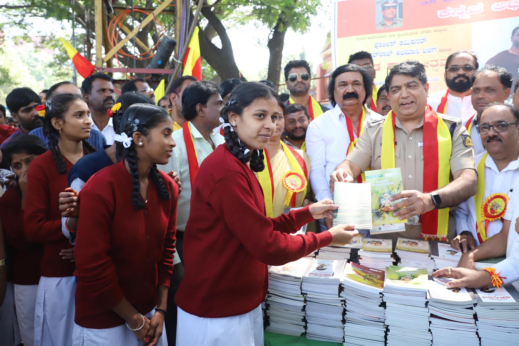 ಬುಧವಾರ ನಗರದ ಮೈಸೂರು ಬ್ಯಾಂಕ್ ವೃತ್ತದಲ್ಲಿ ಪೊಲೀಸ್ ಆಯುಕ್ತ ಅಭಿಮಾನಿಗಳ ಬಳಗ, ಕನ್ನಡ ಅಭಿವೃದ್ಧಿ ಬಳಗ ವತಿಯಿಂದ ಕನ್ನಡ ರಾಜ್ಯೋತ್ಸವ ಅಂಗವಾಗಿ ಏರ್ಪಡಿಸಿದ್ದ, 500 ಕನ್ನಡ ಪುಸ್ತಕಗಳನ್ನು ಉಚಿತವಾಗಿ ವಿತರಿಸಿ ಅವರು ಮಾತನಾಡಿದರು.