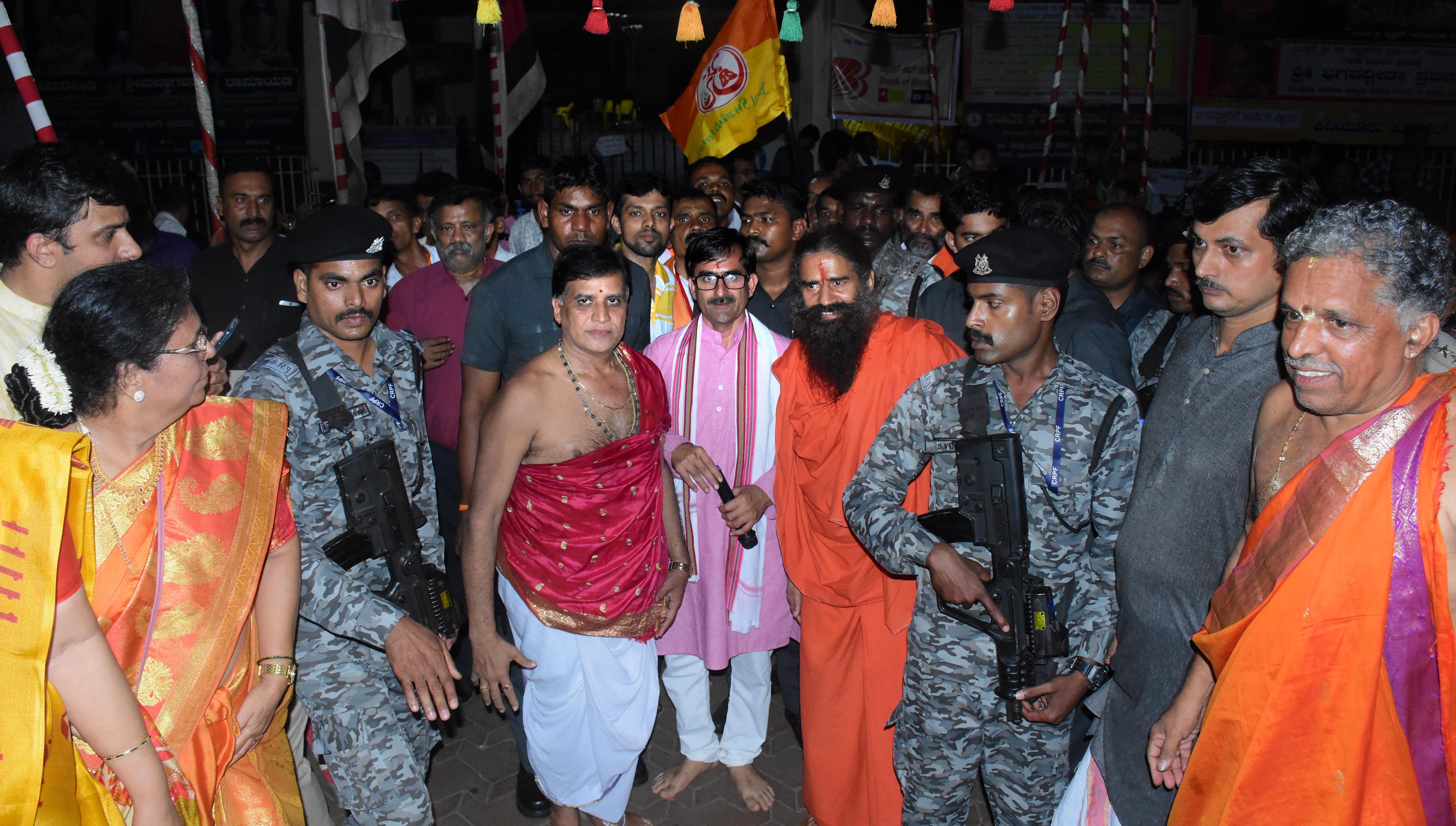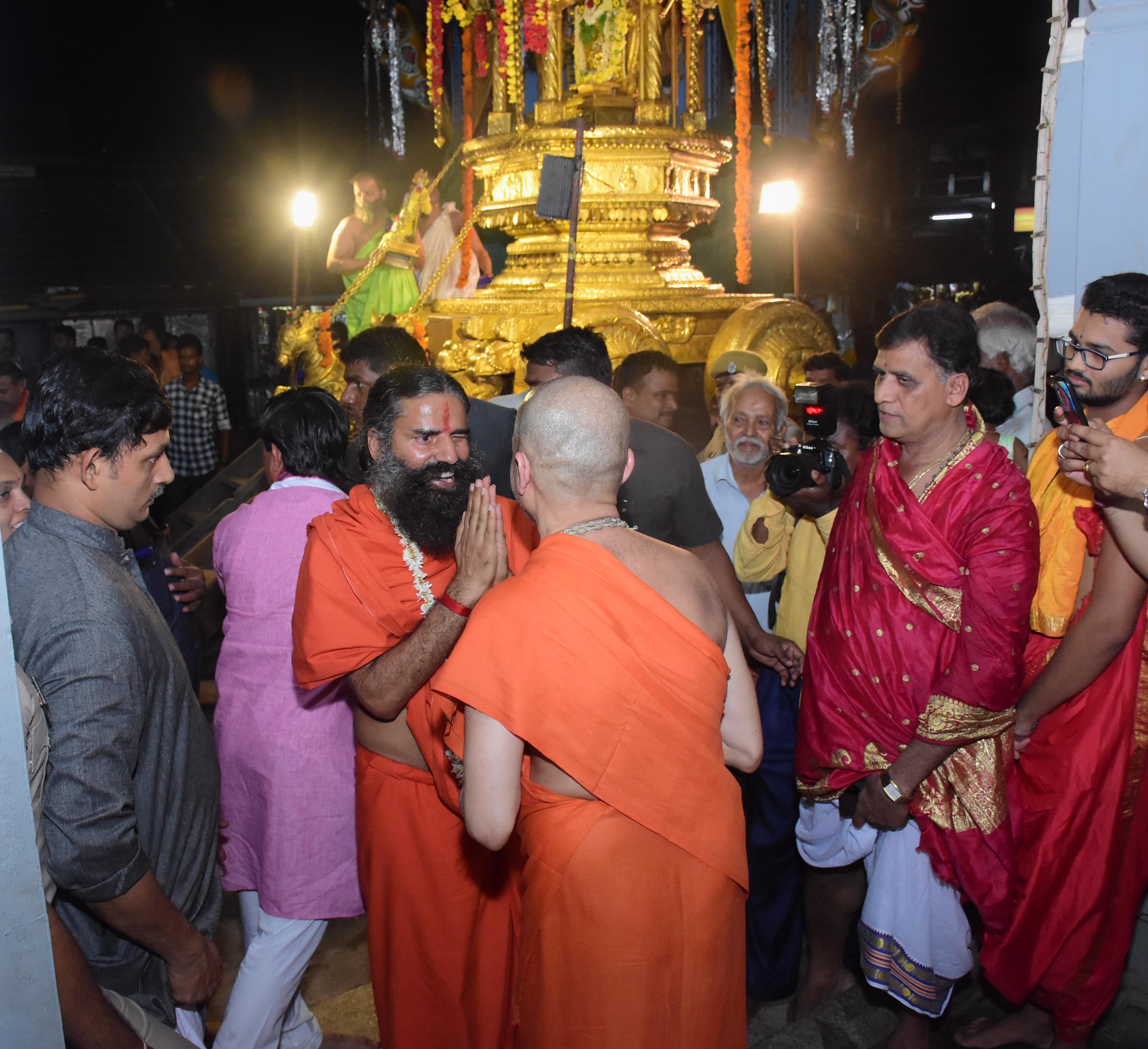 ನಿಗದಿತ ಸಮಯಕ್ಕಿಂತ ಸುಮಾರು ಎರಡು ಗಂಟೆ ತಡವಾಗಿ ಆಗಮಿಸಿದ ರಾಮದೇವ್ರಿಗೆ ಕಲ್ಸಂಕ ಬಳಿ ಭವ್ಯ ಸ್ವಾಗತ ದೊಂದಿಗೆ ಮಠಕ್ಕೆ ಕರತರಲಾಯಿತು. ಪತ್ರಿಕಾಗೋಷ್ಠಿಯ ಬಳಿಕ ಅವರು ರಥಬೀದಿಯಲ್ಲಿ ರಥೋತ್ಸವದಲ್ಲಿ ಭಾಗಿಯಾಗಿದ್ದ ಪರ್ಯಾಯ ಪಲಿಮಾರು ಶ್ರೀಗಳನ್ನು ಭೇಟಿಯಾದರಲ್ಲದೇ ಅವರೊಂದಿಗೆ ರಥೋತ್ಸವದಲ್ಲಿ ಭಾಗವಹಿಸಿದರು.