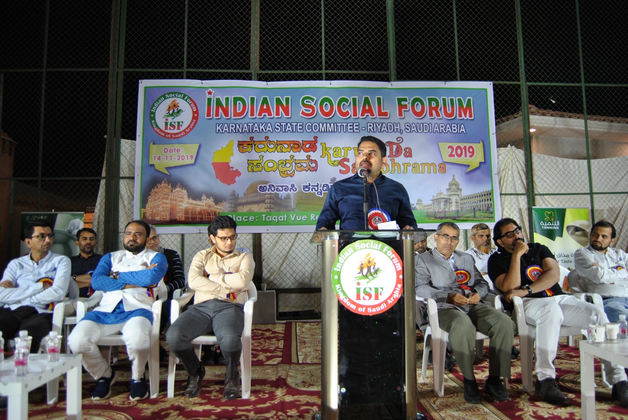 ಕಾರ್ಯಕ್ರಮದ ಮೊದಲಿಗೆ ಇಂಡಿಯನ್ ಸೋಶಿಯಲ್ ಫೋರಂ, ಕರ್ನಾಟಕ ರಾಜ್ಯ ಸಮಿತಿ ರಿಯಾದ್ ಇದರ ಪ್ರಧಾನ ಕಾರ್ಯದರ್ಶಿ ಮೊಹಮ್ಮದ್ ಶರೀಫ್ ಸ್ವಾಗತಿಸಿದರೆ, ಮೊಹಮ್ಮದ್ ಸಿರಾಜ್ ವಂದಿಸಿದರು. ತಾಜುದ್ದೀನ್ ಕಾರ್ಯಕ್ರಮವನ್ನು ನಿರೂಪಿಸಿದರು.