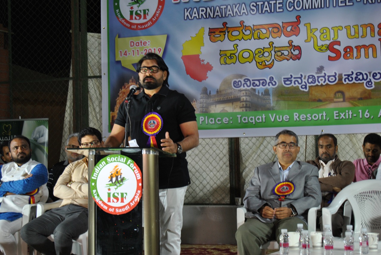 ಕಾರ್ಯಕ್ರಮದ ದಿಕ್ಸೂಚಿ ಭಾಷಣ ಮಾಡಿದ ಸೋಶಿಯಲ್ ಡೆಮಾಕ್ರೆಟಿಕ್ ಪಾರ್ಟಿ ಆಫ್ ಇಂಡಿಯಾದ ಕರ್ನಾಟಕ ರಾಜ್ಯ ಪ್ರಧಾನ ಕಾರ್ಯದರ್ಶಿ ರಿಯಾಝ್ ಫರಂಗಿಪೇಟೆ ಕನ್ನಡದ ಕಂಪನ್ನು ಅರೇಬಿಯಾದ ಮಣ್ಣಲ್ಲಿ ಪಸರಿಸಿ ಅನಿವಾಸಿ ಭಾರತೀಯರನ್ನು ಒಗ್ಗೂಡಿಸಿ, ಕರ್ನಾಟಕದ ಇತಿಹಾಸ ಮತ್ತು ಸಂಸ್ಕೃತಿಯ ಅನಾವರಣ ಇಂಡಿಯನ್ ಸೋಶಿಯಲ್ ಫೋರಂ ಹಮ್ಮಿಕೊಂಡ ಕರುನಾಡ ಸಂಭ್ರಮವು ಒಂದು ಅರ್ಥಪೂರ್ಣ ಕಾರ್ಯಕ್ರಮ ಎಂದು ಹೇಳಿದರು.