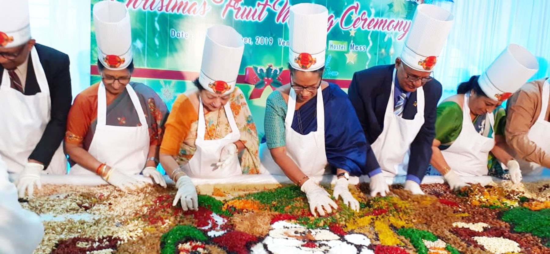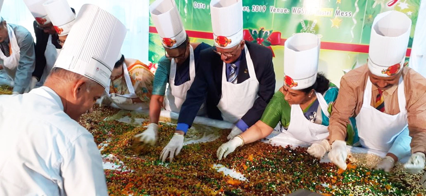 ಮಣಿಪಾಲ ಮಾಹೆಯ ವೆಲ್ಕಮ್ ಗ್ರೂಪ್ ಗ್ರಾಜ್ಯುವೇಟ್ ಸ್ಕೂಲ್ ಆಫ್ ಹೊಟೇಲ್ ಅಡ್ಮಿಸ್ಟ್ರೇಷನ್ ಹಾಗೂ ಫಾರ್ಚ್ಯೂನ್ ಇನ್ ವ್ಯಾಲಿವ್ಯೆ ಹೊಟೇಲ್ಗಳ ಜಂಟಿ ಆಶ್ರಯದಲ್ಲಿ ನಡೆದ ಕೇಕ್ ಮಿಕ್ಸಿಂಗ್ ಕಾರ್ಯಕ್ರಮದಲ್ಲಿ ಕಿಲೋಗಟ್ಟಲೆ ನಟ್ಸ್ ಮತ್ತು ಡ್ರೈಪ್ರುಟ್ಸ್ಗಳನ್ನು ವಿವಿಧ ಬಗೆಯ ಮದ್ಯದಲ್ಲಿ ಕಲಸಿ ನೆನಸಿ ಇಡಲಾಯಿತು.