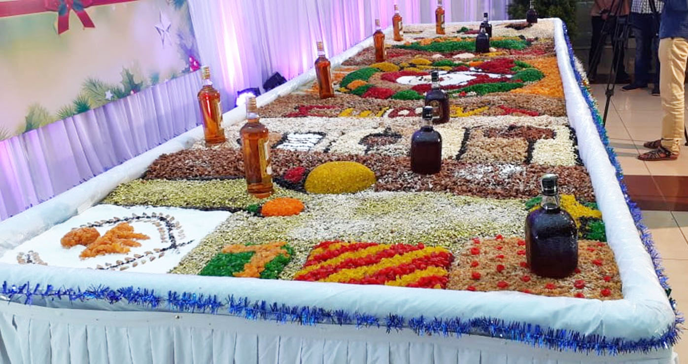 ಇಂದು ಲಕ್ಷಾಂತರ ರೂ. ಮೌಲ್ಯದ ಸುಮಾರು 250 ಕೆ.ಜಿ.ಯಷ್ಟು ಗೋಡಂಬಿ ಬೀಜ, ಒಣದ್ರಾಕ್ಷೆ, 3 ಬಗೆಯ ಟೂಟಿ-ಫ್ರೂಟಿ, ಚೆರ್ರಿ, ಬಾದಾಮ್, ಅಲ್ಮೋಡ ಹಾಗೂ ಇತರ ಡ್ರೈ ಫ್ರುಟ್ಸ್ಗಳನ್ನು 80 ಲೀ.ನಷ್ಟು ರಮ್, ಬ್ರಾಂಡಿ, ಬಿಳಿ ಮತ್ತು ಕೆಂಪು ವೈನ್, ದ್ರಾಕ್ಷಾರಸ, ಕಿತ್ತಳೆ ರಸ ಹಾಗೂ ಜೇನುತುಪ್ಪದೊಂದಿಗೆ ಬೆರೆಸಿ ಅದನ್ನು ಗಾಳಿಯಾಡದ ಪಾತ್ರೆಯಲ್ಲಿ ಸುಮಾರು ಒಂದು ತಿಂಗಳ ಕಾಲ ಮುಚ್ಚಿಟ್ಟು, ನಂತರ ಅದರಿಂದ ವೈವಿಧ್ಯಮಯ ಕೇಕ್ ತಯಾರಿಸಲಾಗುತ್ತದೆ ಎಂದವರು ವಿವರಿಸಿದರು.
