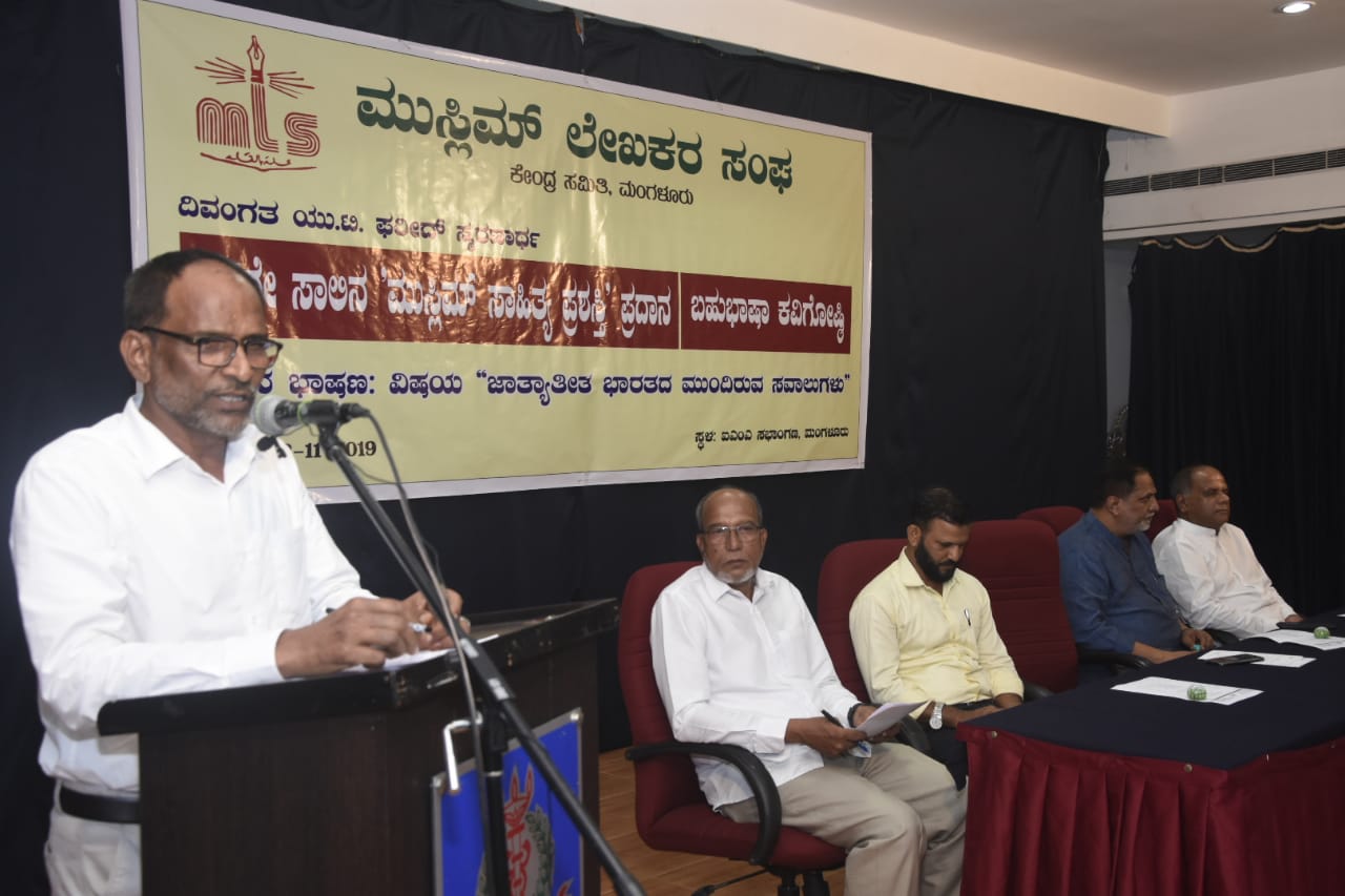 ಮಂಗಳೂರು, ನ. 22: ಮುಸ್ಲಿಮ್ ಲೇಖಕರ ಸಂಘವು ಕನ್ನಡದಲ್ಲಿ ಪ್ರಕಟಗೊಂಡ ಮುಸ್ಲಿಮ್ ಬರಹಗಾರರ ಅತ್ಯುತ್ತಮ ಕೃತಿಗೆ ಪ್ರತಿವರ್ಷ ನೀಡುವ ರಾಜ್ಯಮಟ್ಟದ ದಿ. ಯು.ಟಿ. ಫರೀದ್ ಸ್ಮರಣಾರ್ಥದ ಮುಸ್ಲಿಮ್ ಸಾಹಿತ್ಯ ಪ್ರಶಸ್ತಿ ಪ್ರದಾನ ಕಾರ್ಯಕ್ರಮವು ಶುಕ್ರವಾರ ನಗರದ ಮಸ್ಜಿದುನ್ನೂರ್ ಬಳಿಯ ಐಎಂಎ ಸಭಾಂಗಣದಲ್ಲಿ ನಡೆಯಿತು.