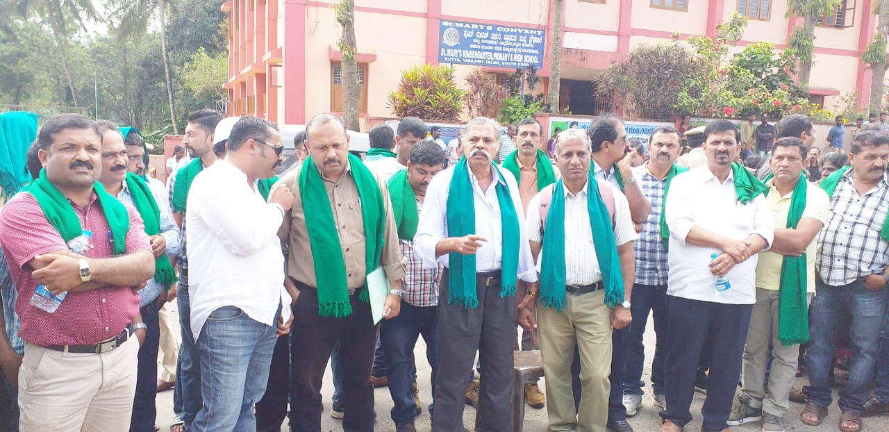 ಮಡಿಕೇರಿ, ನ.23: ಕಾಡಾನೆ ಹಾವಳಿ ತಡೆಯುವಂತೆ ಒತ್ತಾಯಿಸಿ ರೈತ ಸಂಘ ಹಾಗೂ ಹಸಿರು ಸೇನೆಯ ಮುಂದಾಳತ್ವದಲ್ಲಿ ನೂರಾರು ರೈತರು ಕುಟ್ಟ ಬಸ್ ನಿಲ್ದಾಣದಲ್ಲಿ 'ಮಾನವ ಸರಪಳಿ' ರಚಿಸಿ ಅರಣ್ಯ ಇಲಾಖೆಯ ವಿರುದ್ಧ ಅಸಮಾಧಾನ ವ್ಯಕ್ತಪಡಿಸಿದರು.